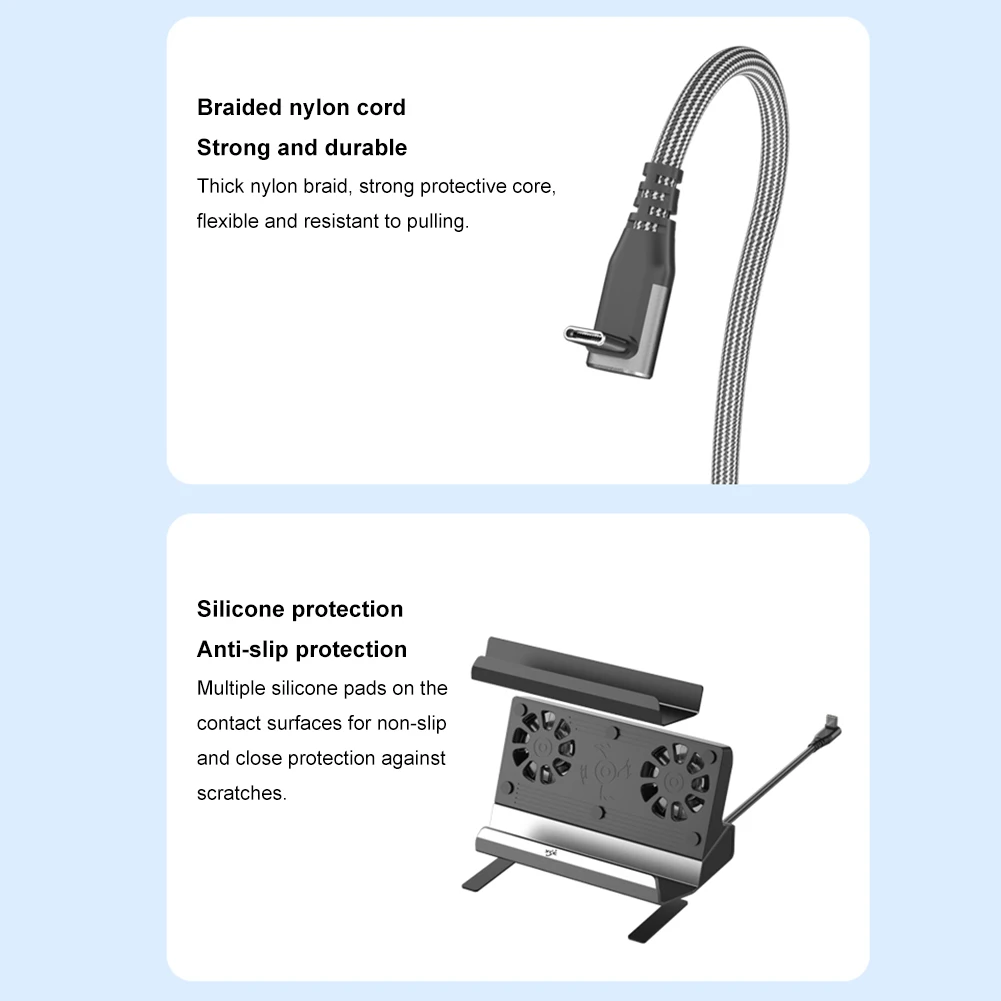 4. Carga rápida PD100W:Con una fuente de alimentación de entrada máxima PD100 W, este concentrador de consola de base sirve como cargador y soporte para sus dispositivos. Le permite cargar sus dispositivos rápidamente mientras continúa usándolos, ofreciendo comodidad y eficiencia.