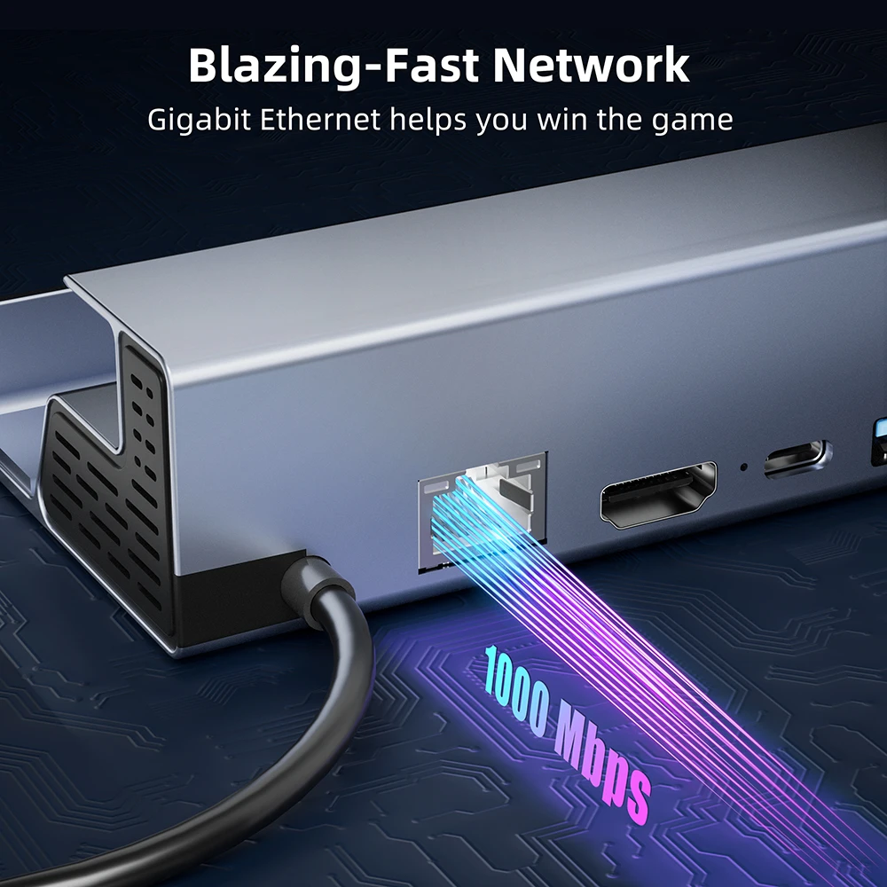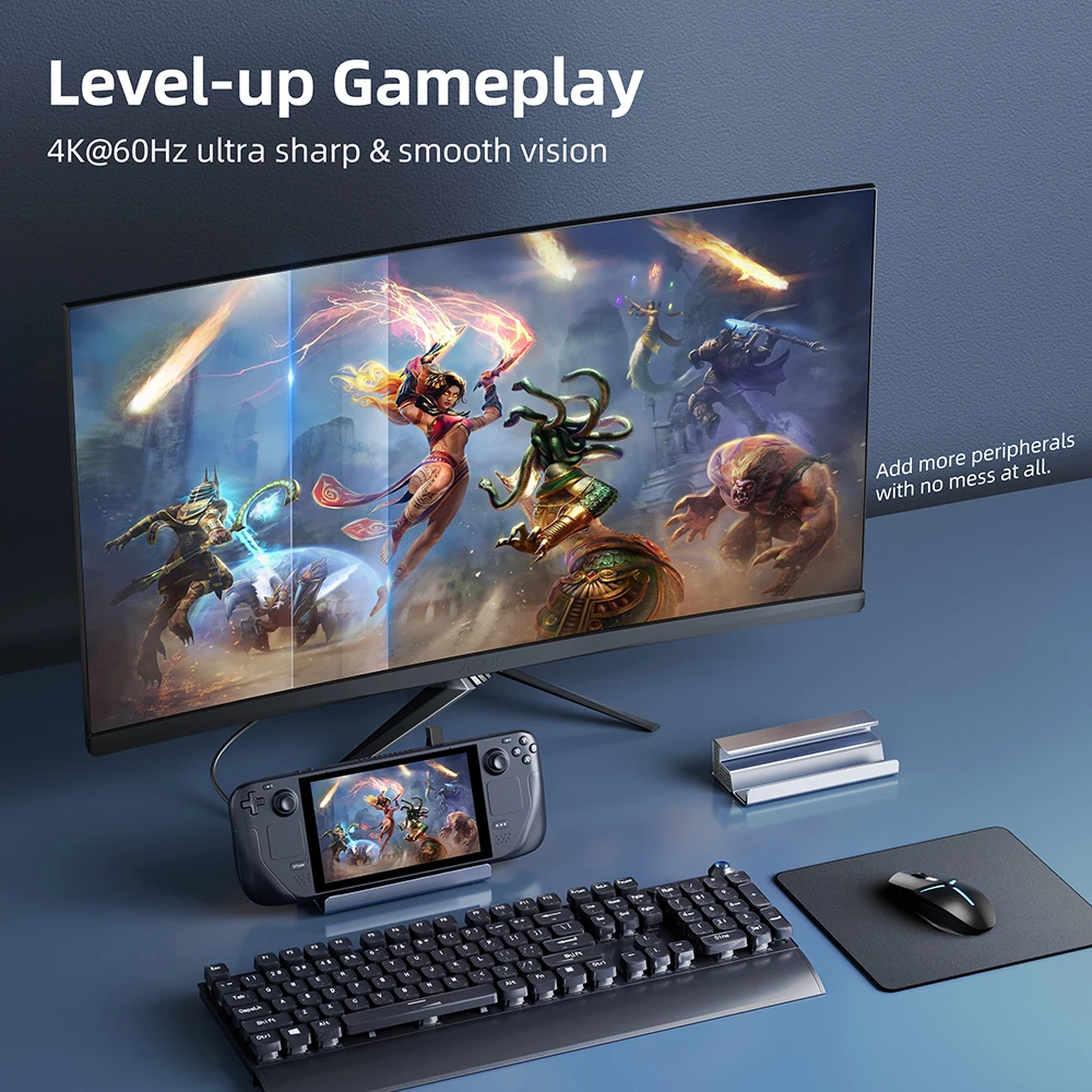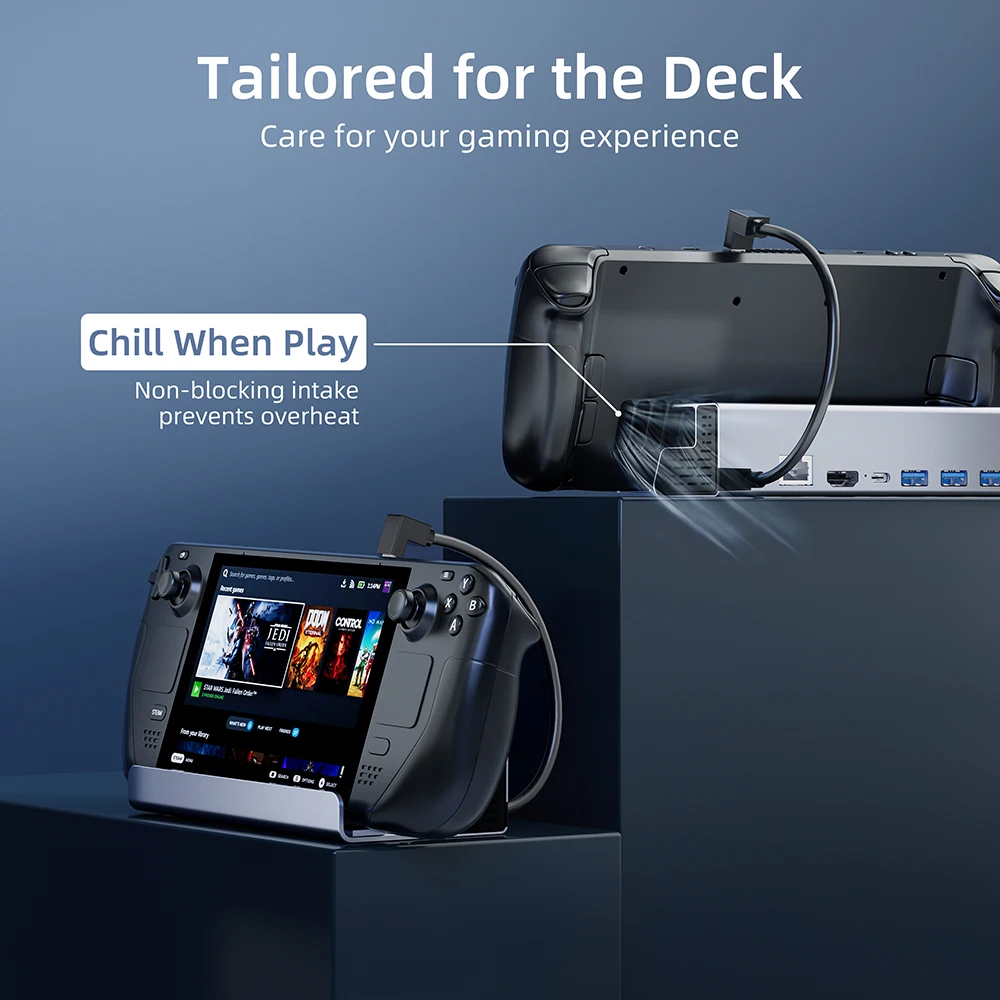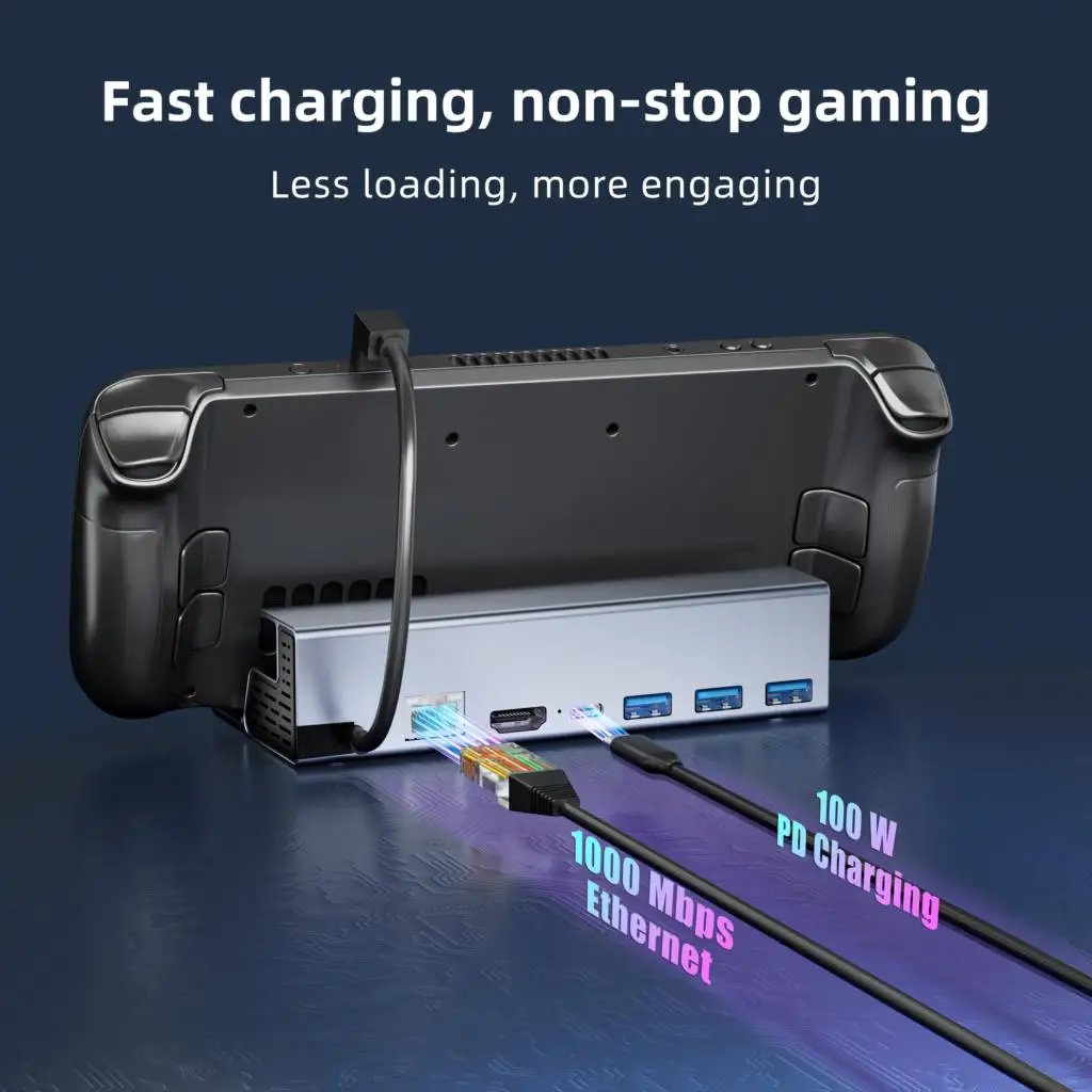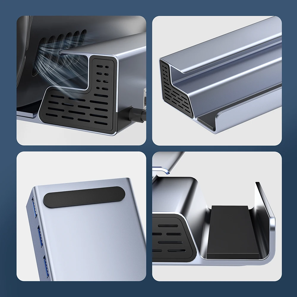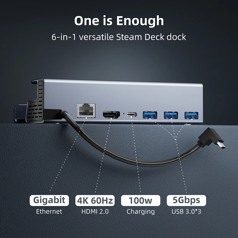 Comprar Estación de acoplamiento para consola Steam Deck, soporte de TV 6 en 1, base de soporte de aleación de aluminio, 60Hz, HDMI tipo C con RJ45 Gigabit Etherne