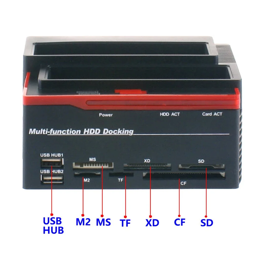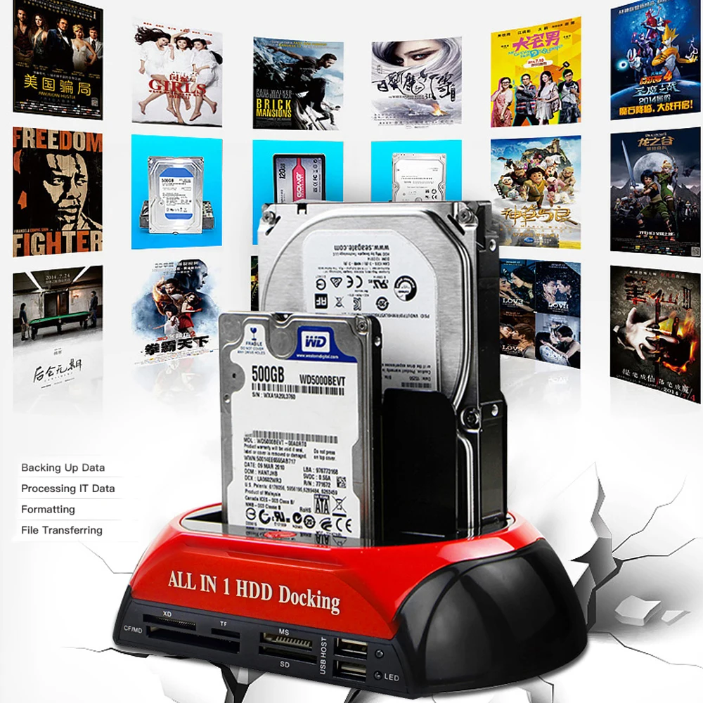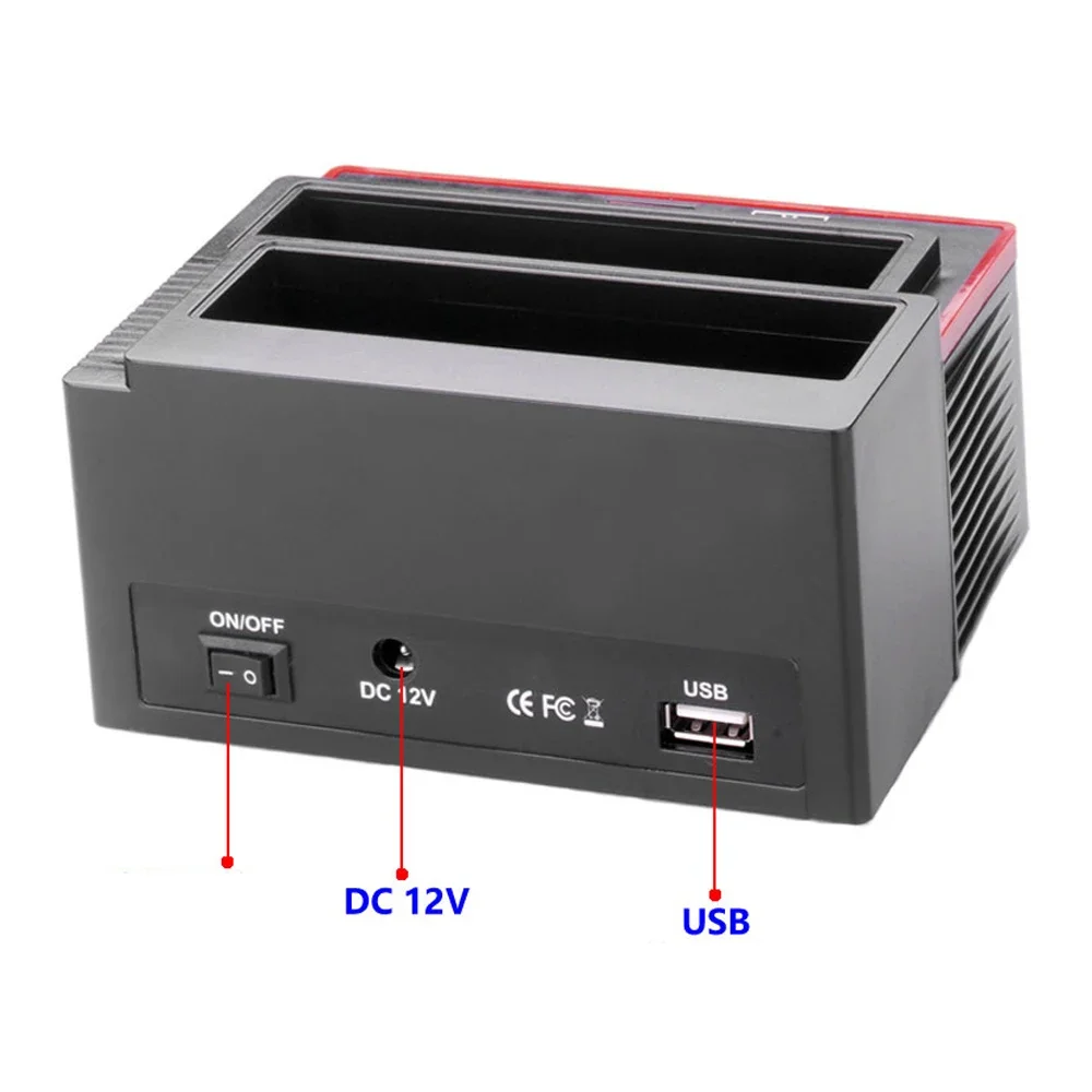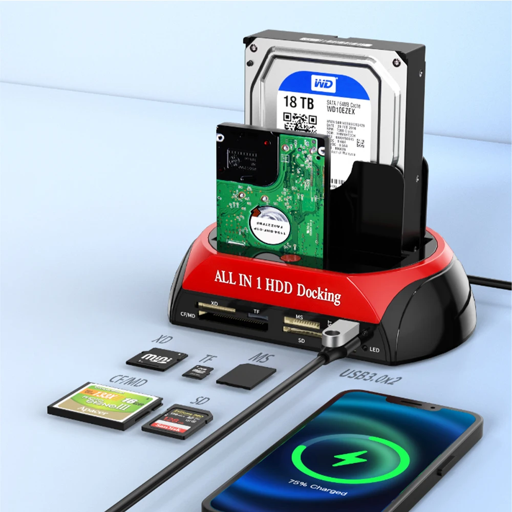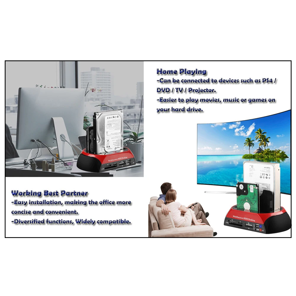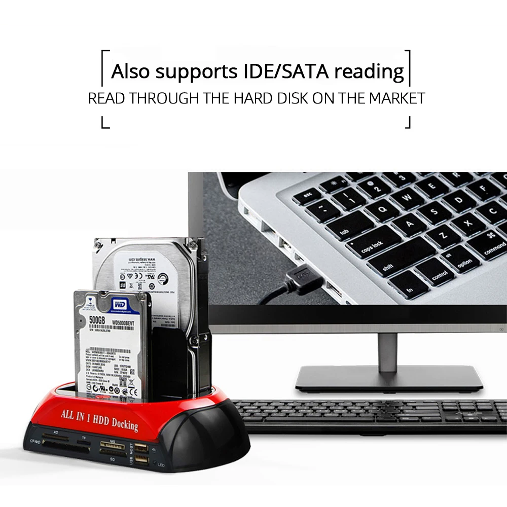 Comprar Estación de acoplamiento de disco duro para lector SATA IDE HDD SSD de 2,5 y 3,5 pulgadas, caja de disco externo con ranuras duales, adaptador Sata a Usb