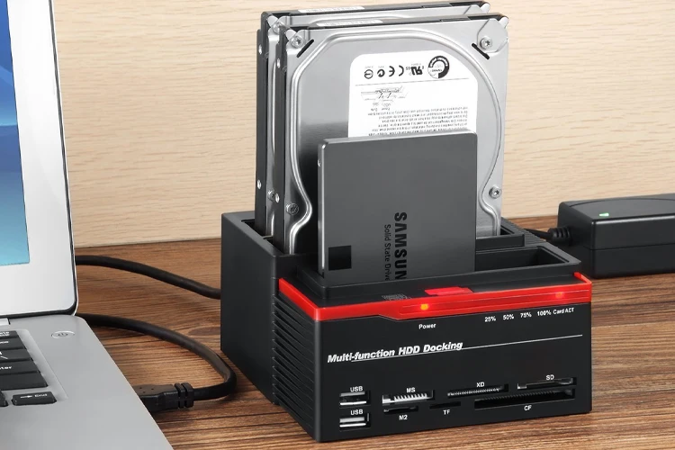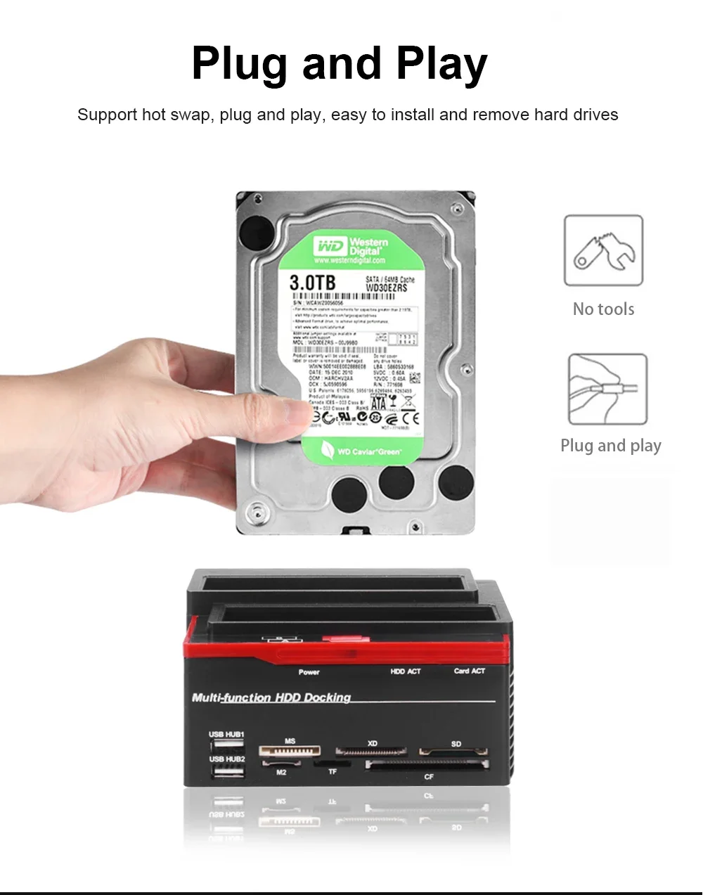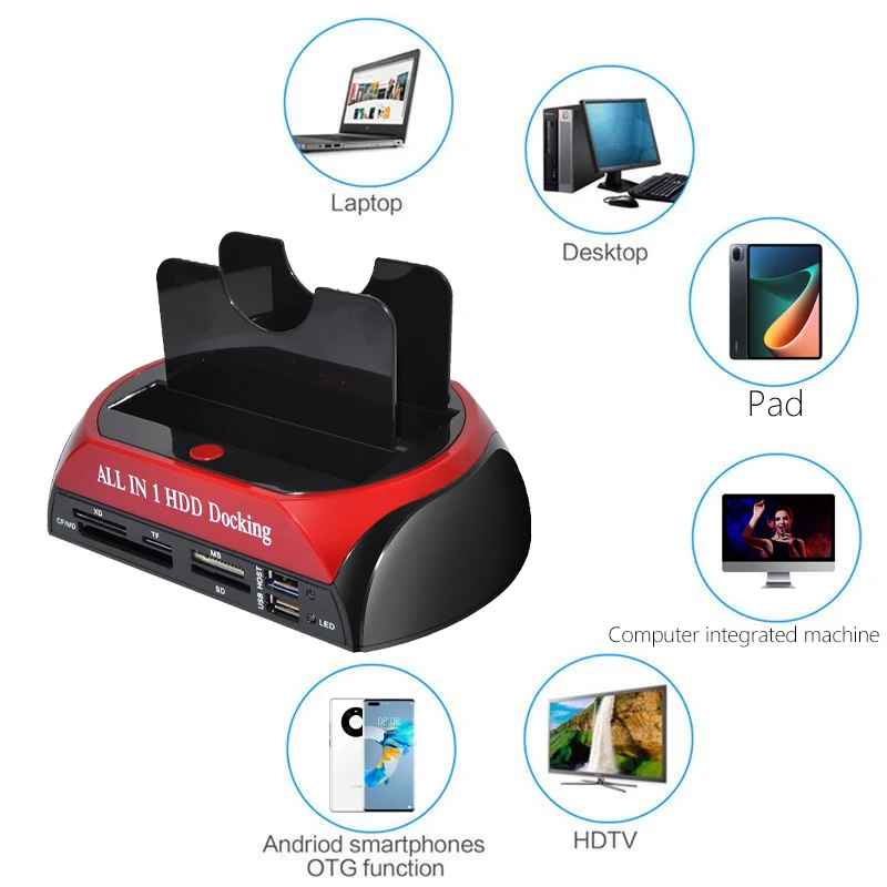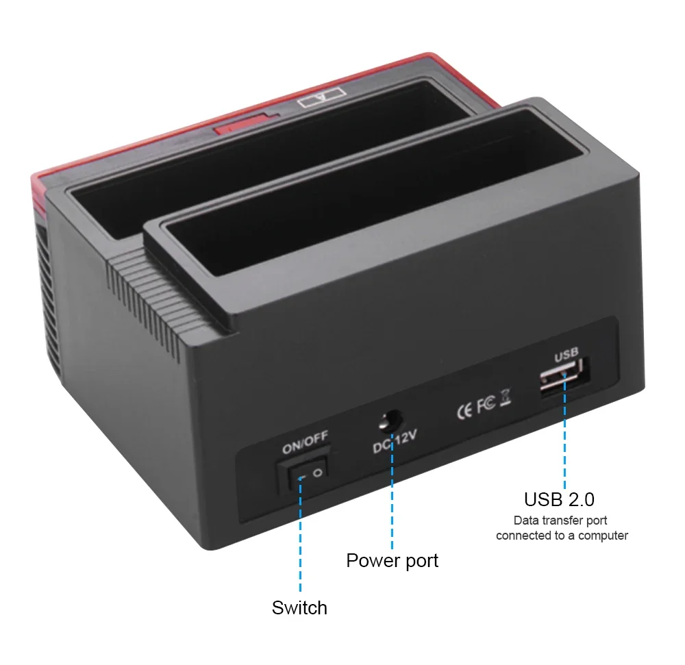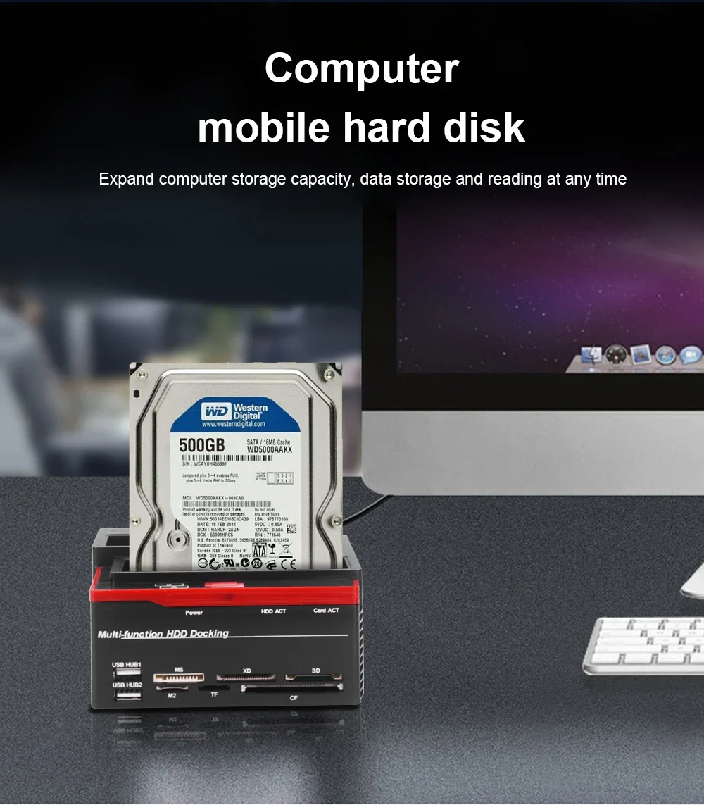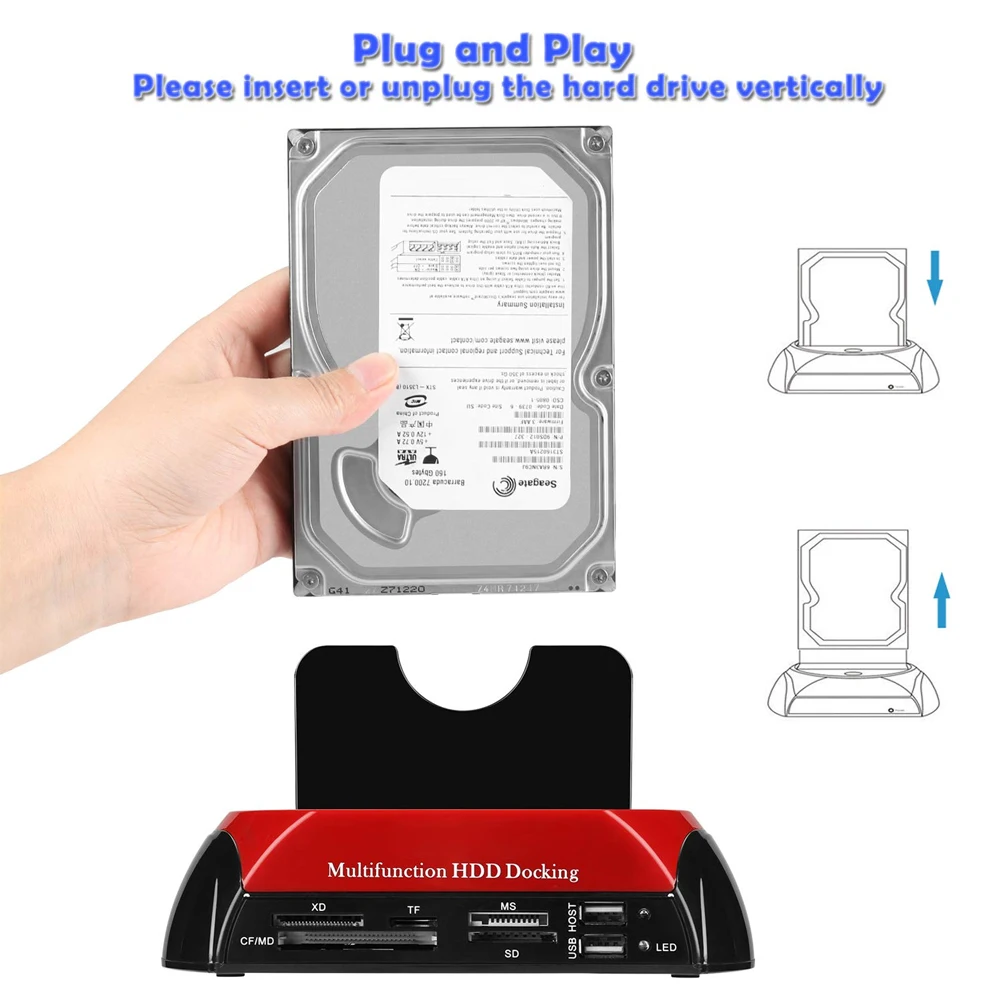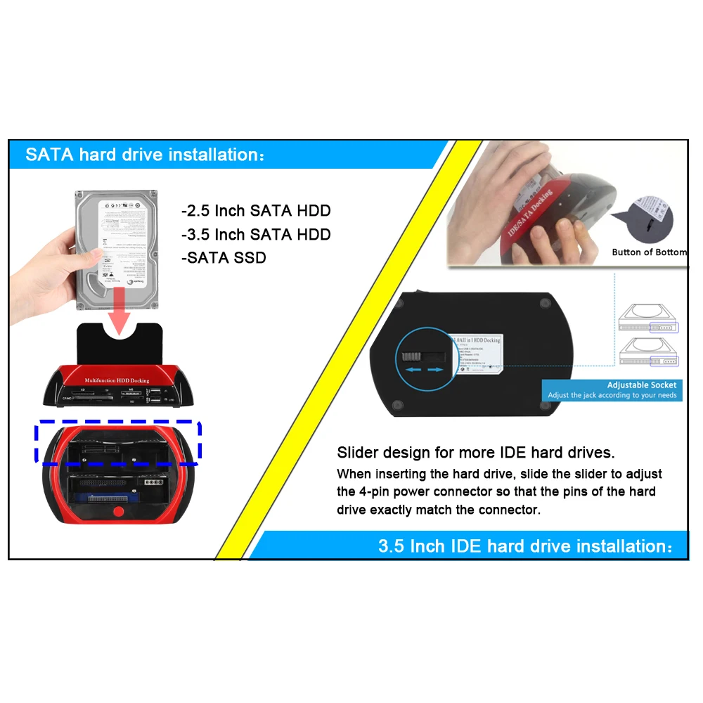 Comprar Estación de acoplamiento de disco duro para lector SATA IDE HDD SSD de 2,5 y 3,5 pulgadas, caja de disco externo con ranuras duales, adaptador Sata a Usb