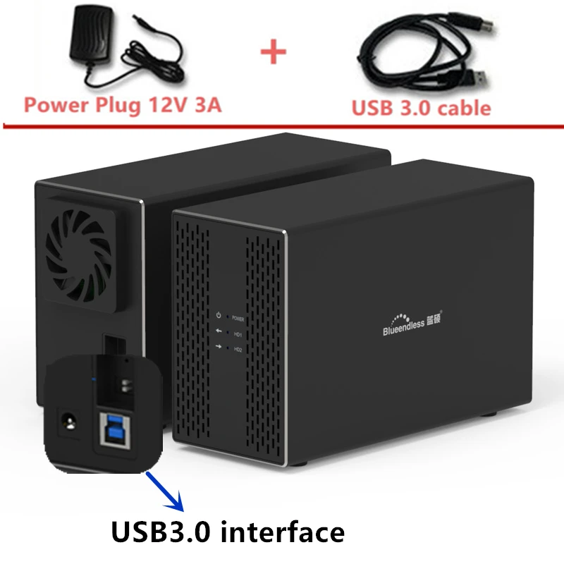 Carcasa con función RAID de doble bahía de 3,5 pulgadas