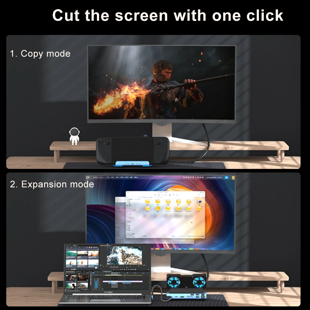Estación de acoplamiento Estación de acoplamiento con ventilador de refrigeración dual 4K @ 60 Hz 4 puertos USB PD100W Gigabit Ethernet Compatible con Steam Deck y Lenovo Legion GO