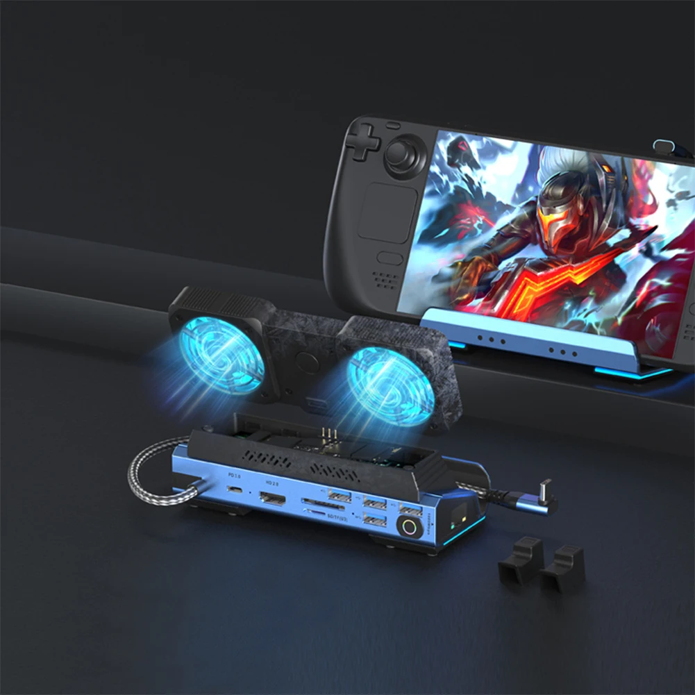 Comprar Estación de acoplamiento Doble ventilador de refrigeración 4K @ 60Hz 4 puertos USB PD100W Gigabit Ethernet para Steam Deck OLED, ROG X y Legion Go