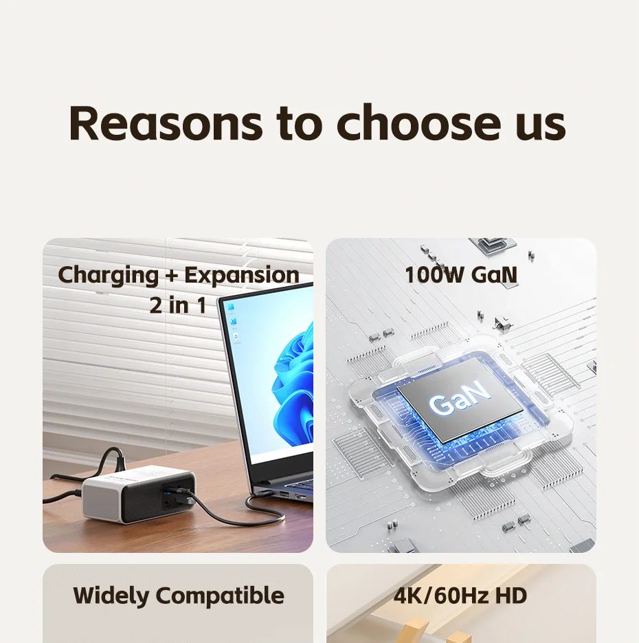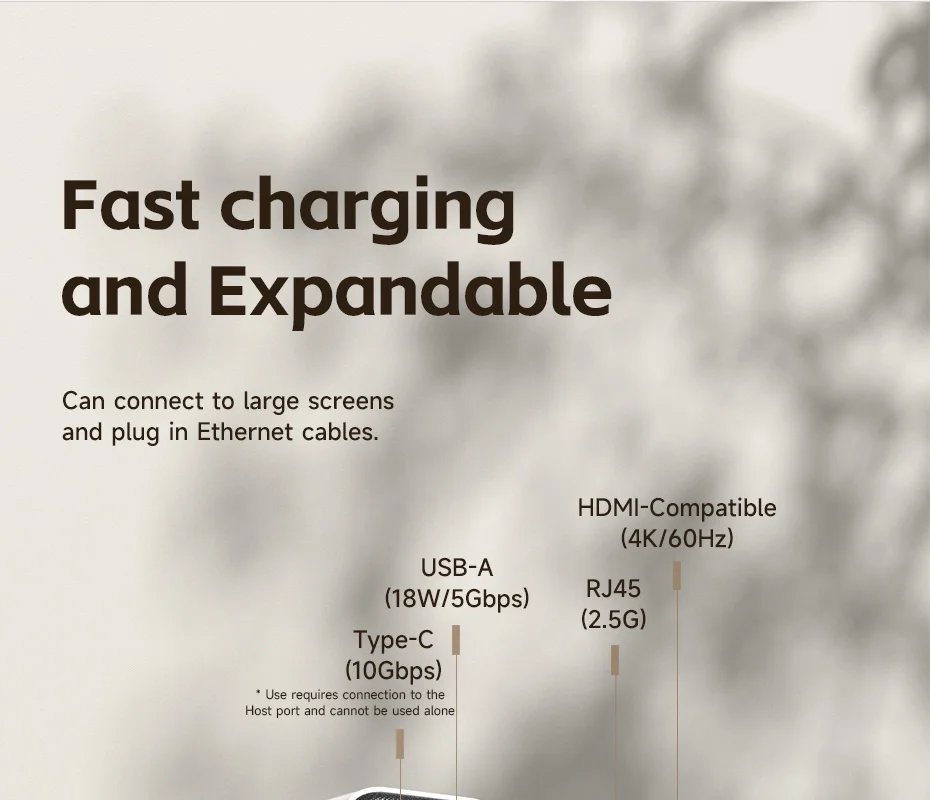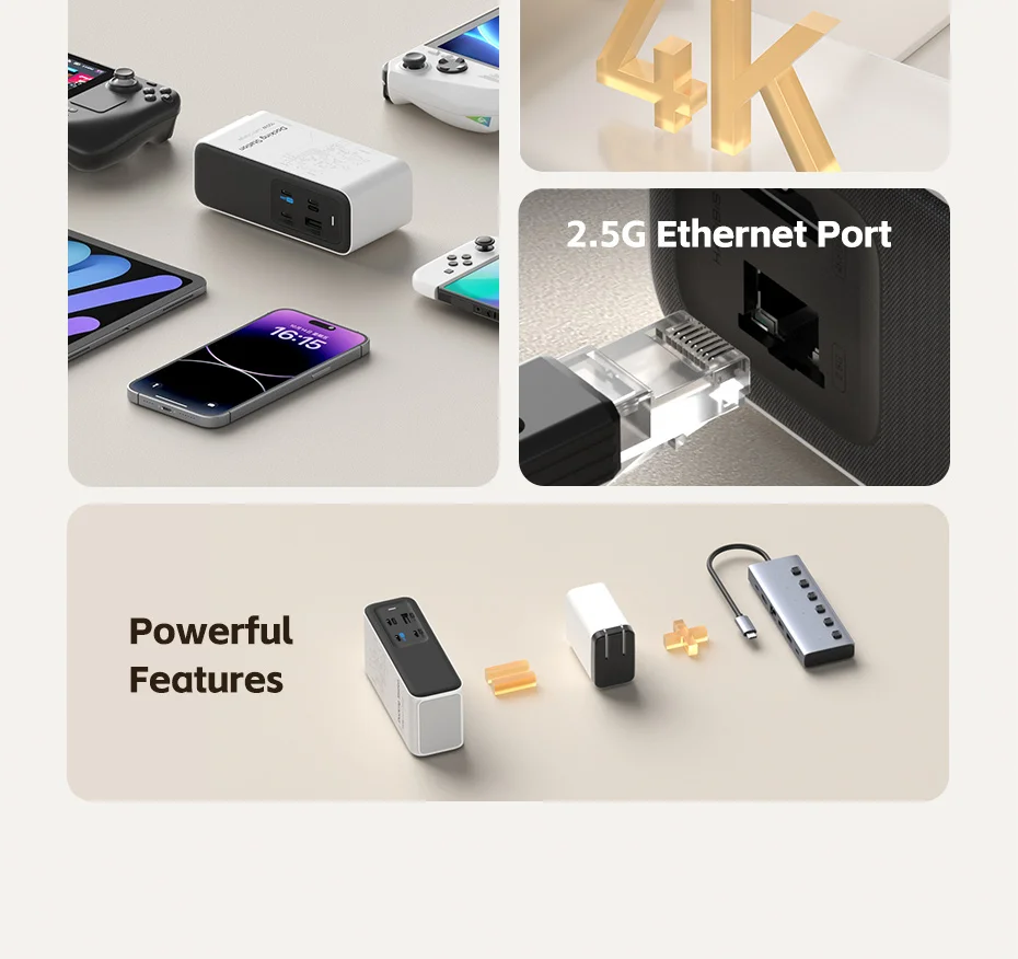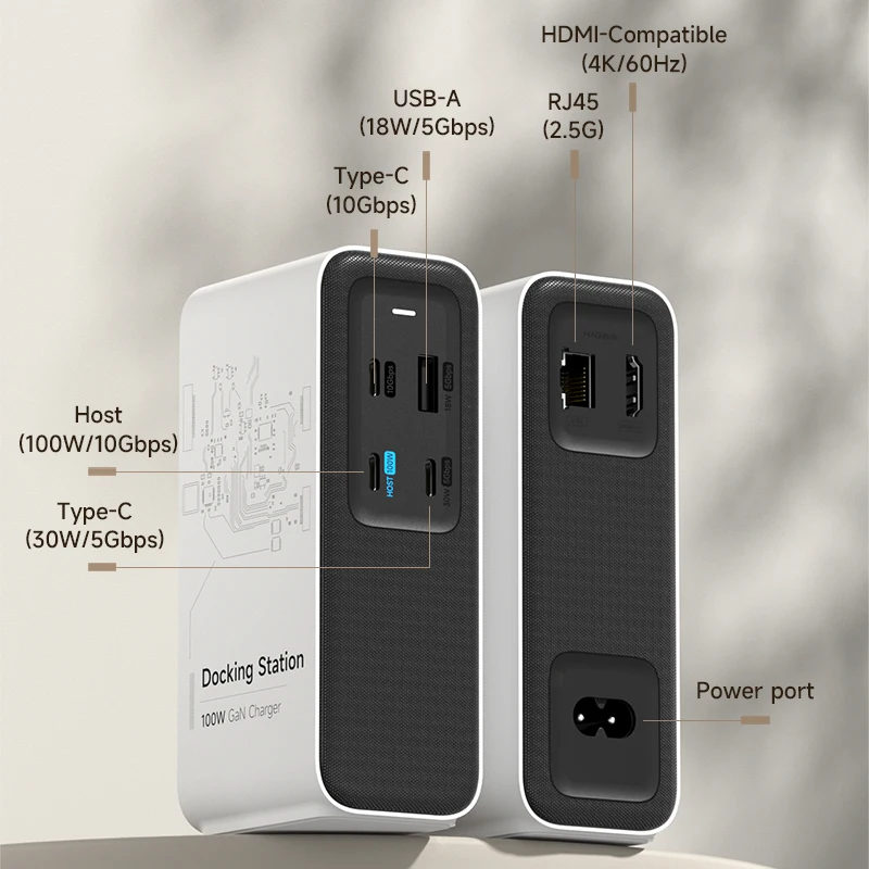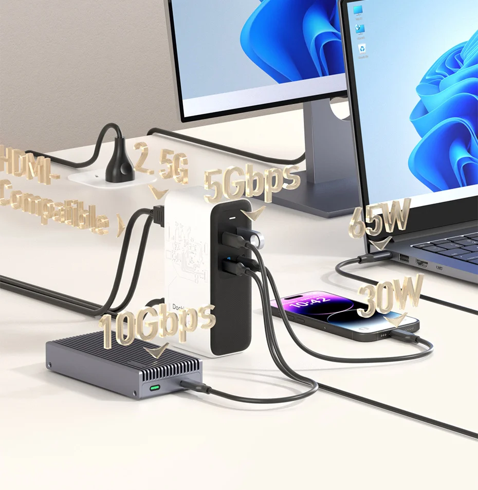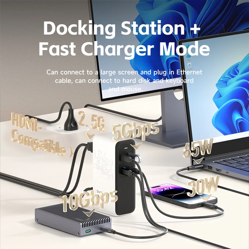 La oficina juega un papel:Al mismo tiempo, para cumplir con la carga rápida de múltiples dispositivos y la expansión de la interfaz, de modo que el escritorio esté más limpio, uno es suficiente
