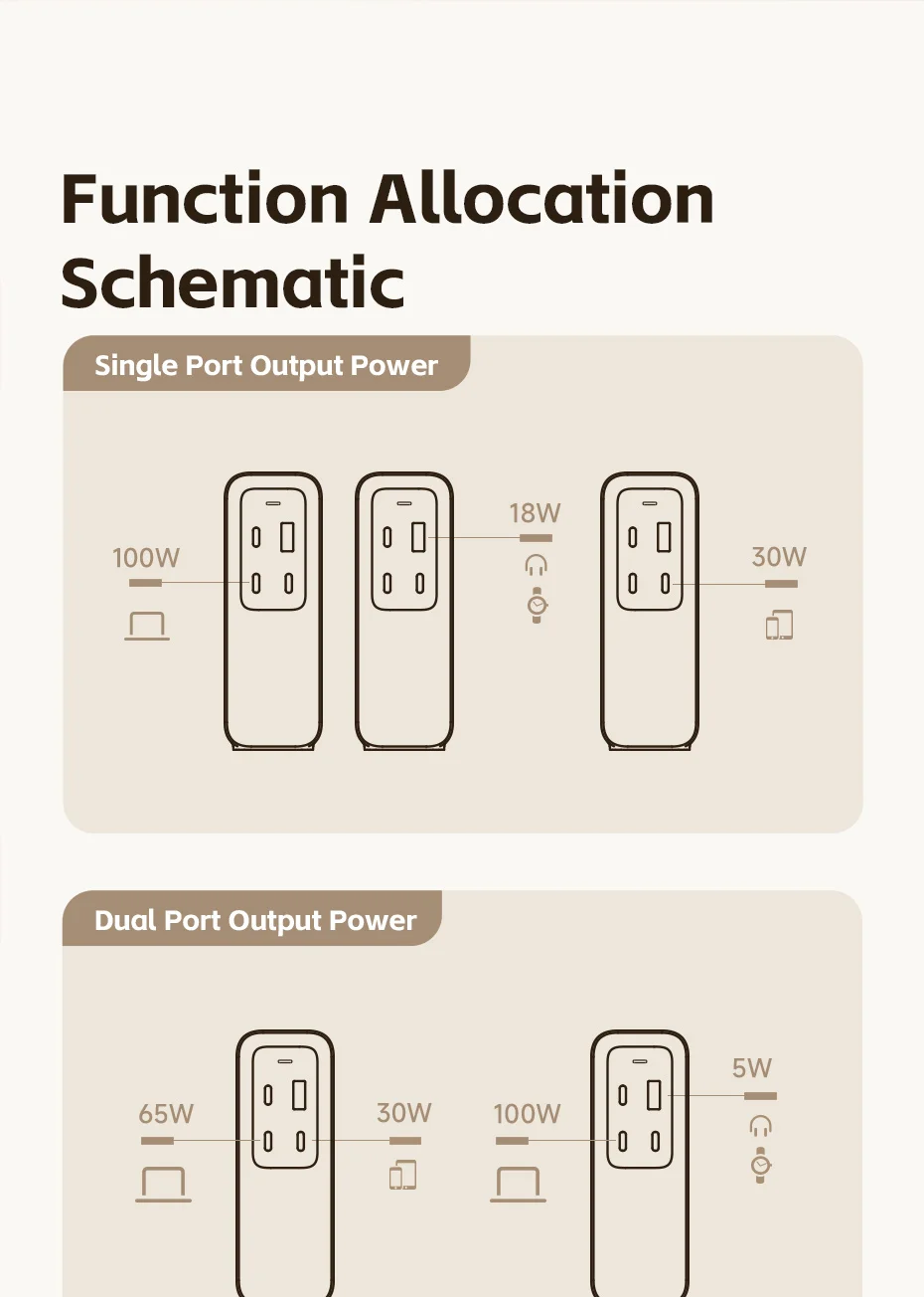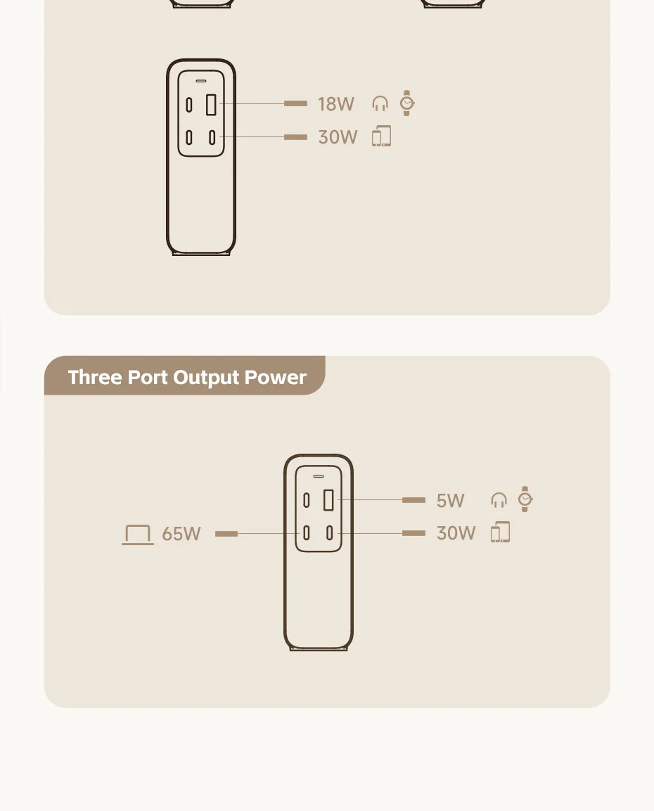 Modo de carga rápida única:Conmutación inteligente de múltiples potencias: puede cargar tres dispositivos al mismo tiempo