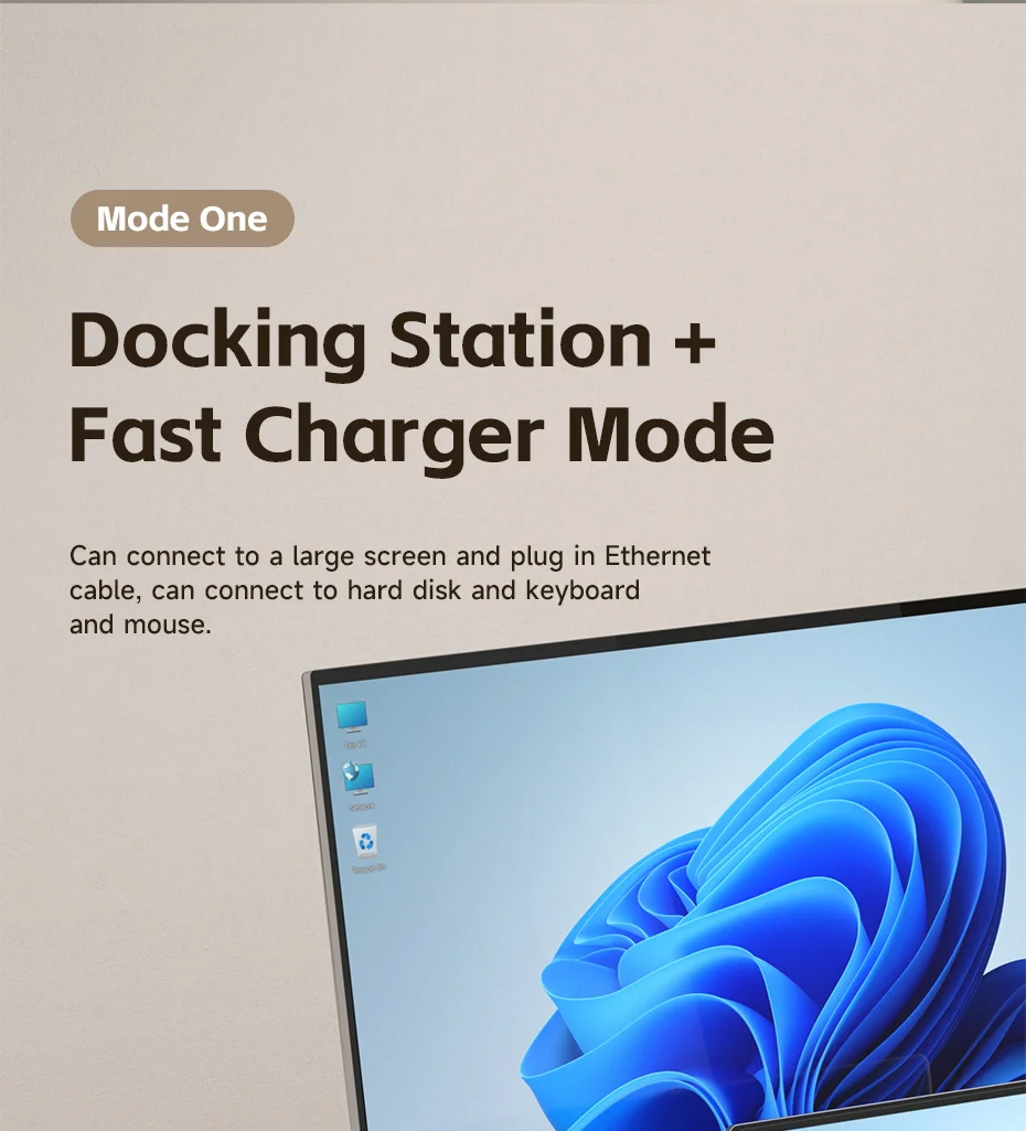 Dock + Carga rápida:Modo dos en uno: se puede conectar a la pantalla grande, se puede conectar al cable de red, se puede conectar al disco duro, al teclado y al mouse