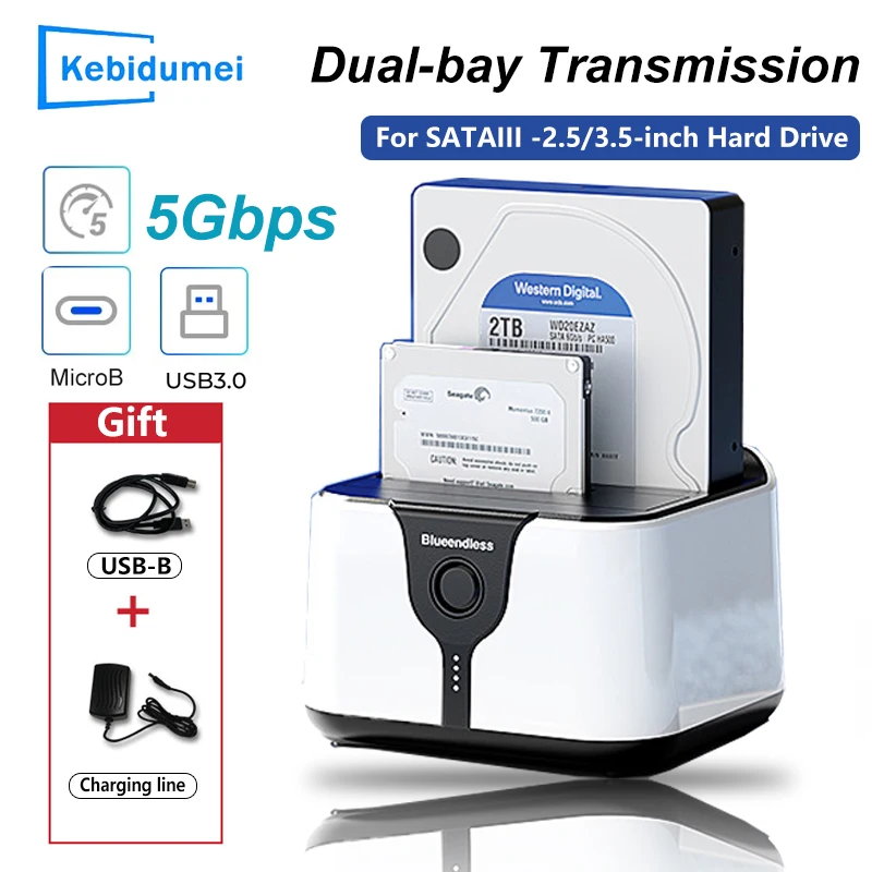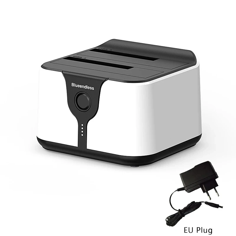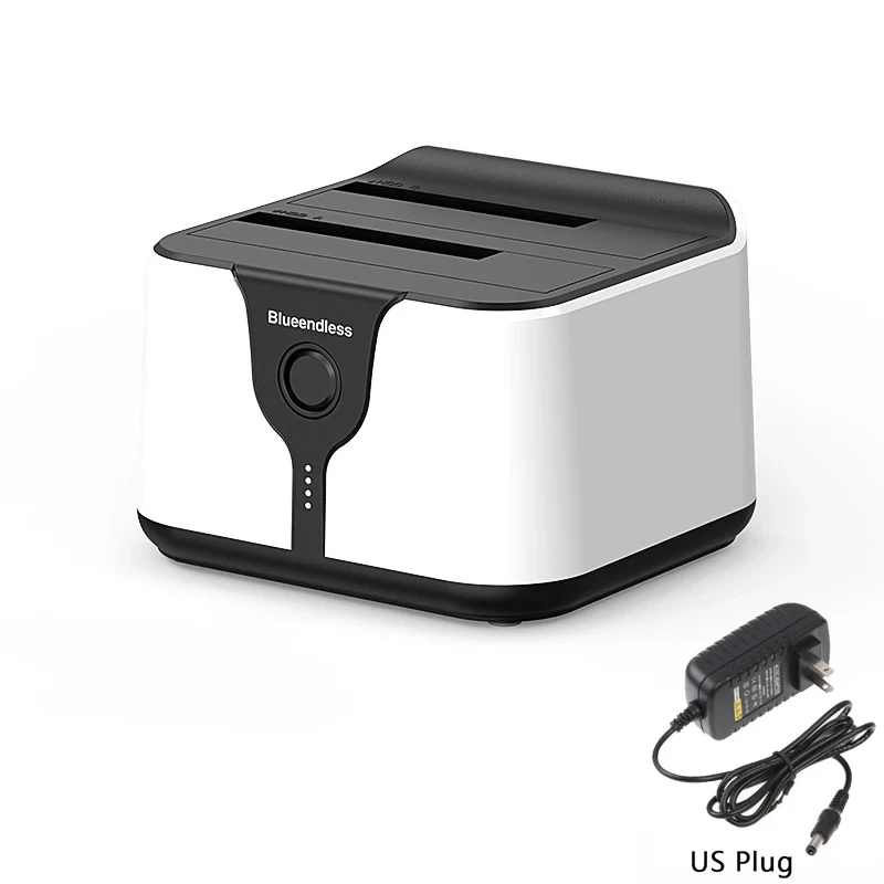 Estación de acoplamiento para disco duro de doble bahía. Esta estación de acoplamiento es compatible con HDD/SSD de 2,5 o 3,5 pulgadas de hasta 20 TB por bahía, proporciona una forma más conveniente de transmitir datos entre su disco duro y su computadora a través de un puerto USB disponible.