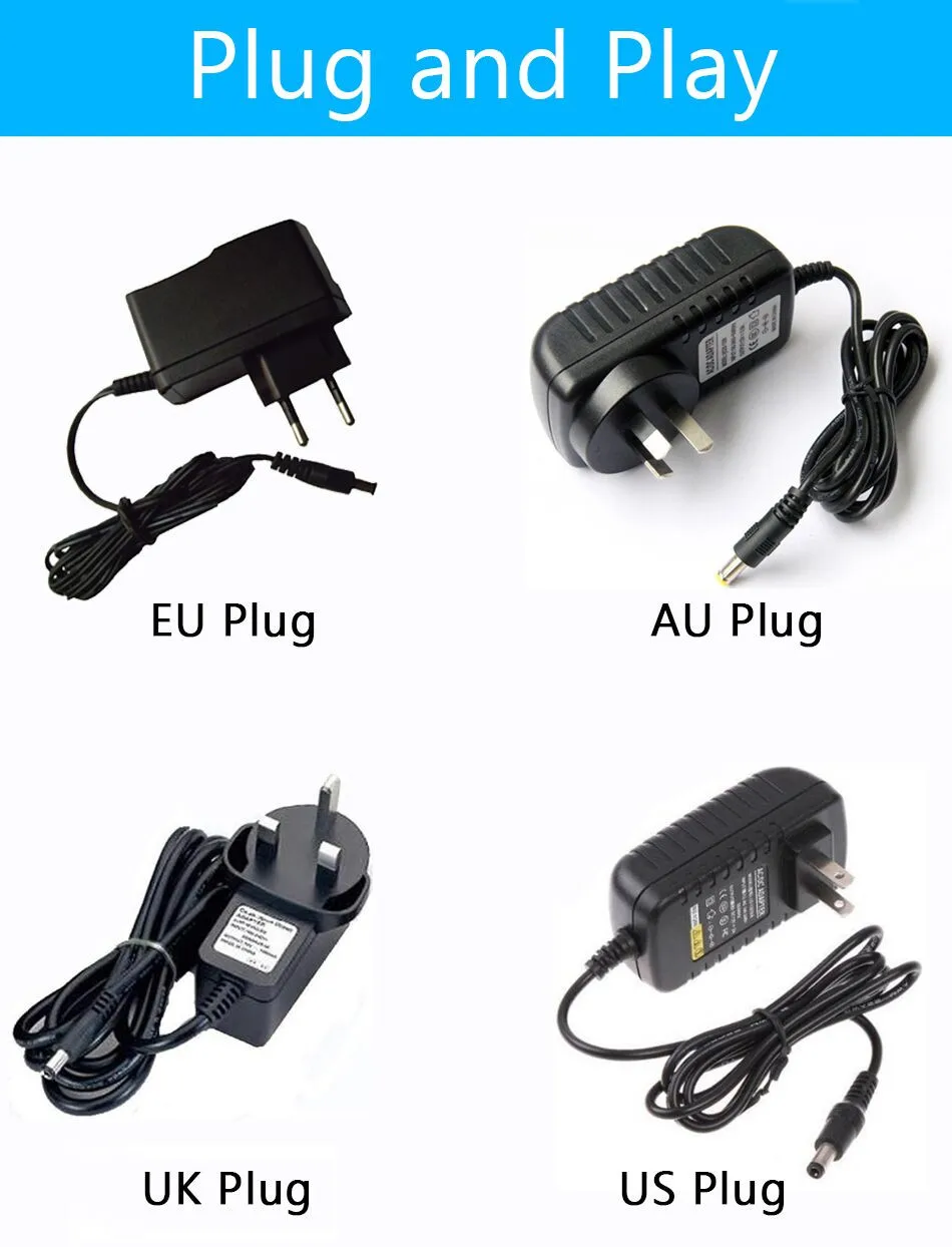 Tenemos fuente de alimentación EU/US/UK/AU para que usted elija (entrada: CA 110 V-240 V, salida CC 12 V/3 A).