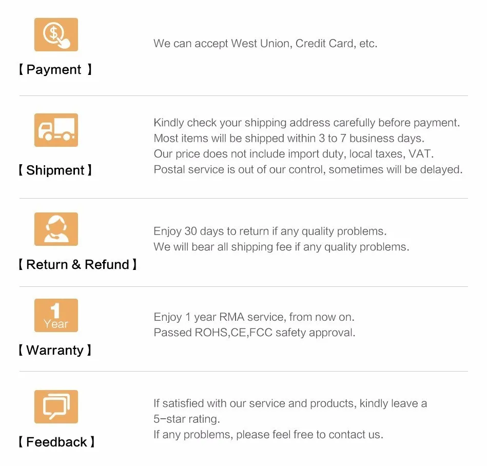 Todos nuestros productos serán verificados por el departamento de control de calidad antes del envío y algunos problemas pueden deberse a un error de operación.Verá la respuesta de seguimiento de referencia.Si tiene otras preguntas, no abra una disputa, puede contactarnos, estamos sinceramente para resolverla, gracias por su buena cooperación.