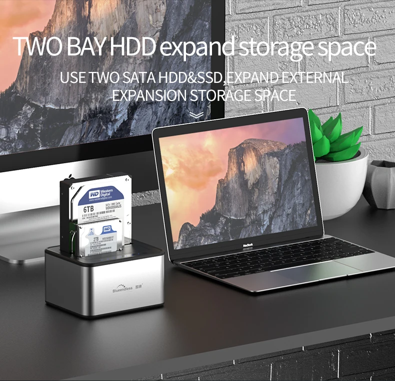 El Blueendless HD05A su base duplicadora independiente le permite duplicar/clonar un disco duro existente sin el uso de un sistema informático host, o se puede conectar a un sistema informático para usarlo como base de disco duro externo.