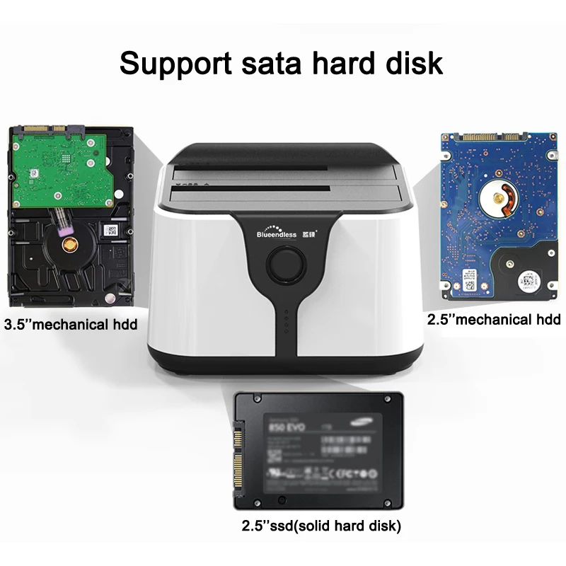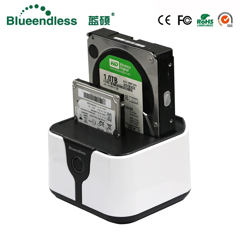 El Blueendless HD05A su base duplicadora independiente le permite duplicar/clonar un disco duro existente sin el uso de un sistema informático host, o se puede conectar a un sistema informático para usarlo como base de disco duro externo.