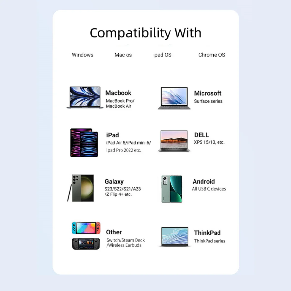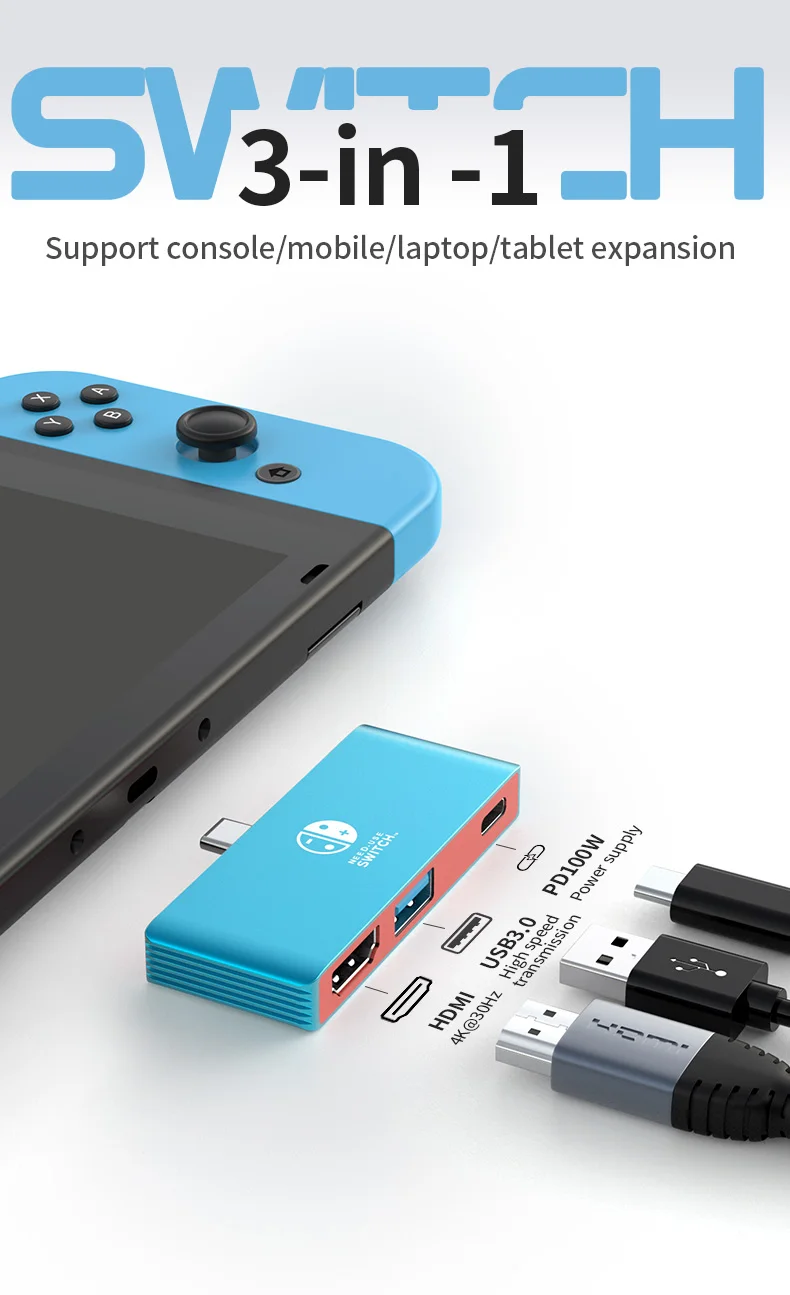 Este concentrador USB-C admite salida HDMI, USB 3.0 para transferencia rápida de datos y suministro de energía PD de 100 W, lo que brinda opciones integrales de conectividad.