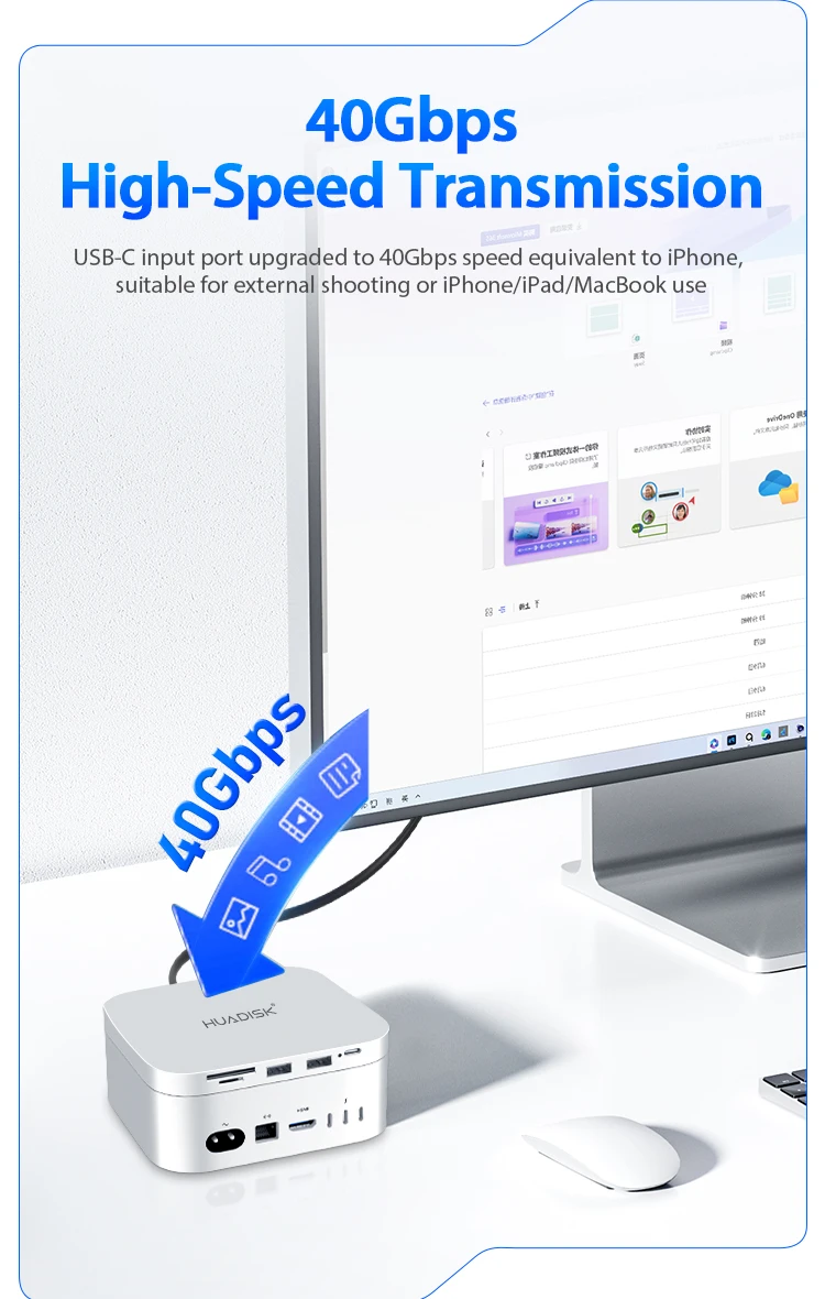 The USB-C input port is increased to the same 40Gbps speed as for iPhone, and the file transfer between for iPhone/for iPad/for MacBook is faster.