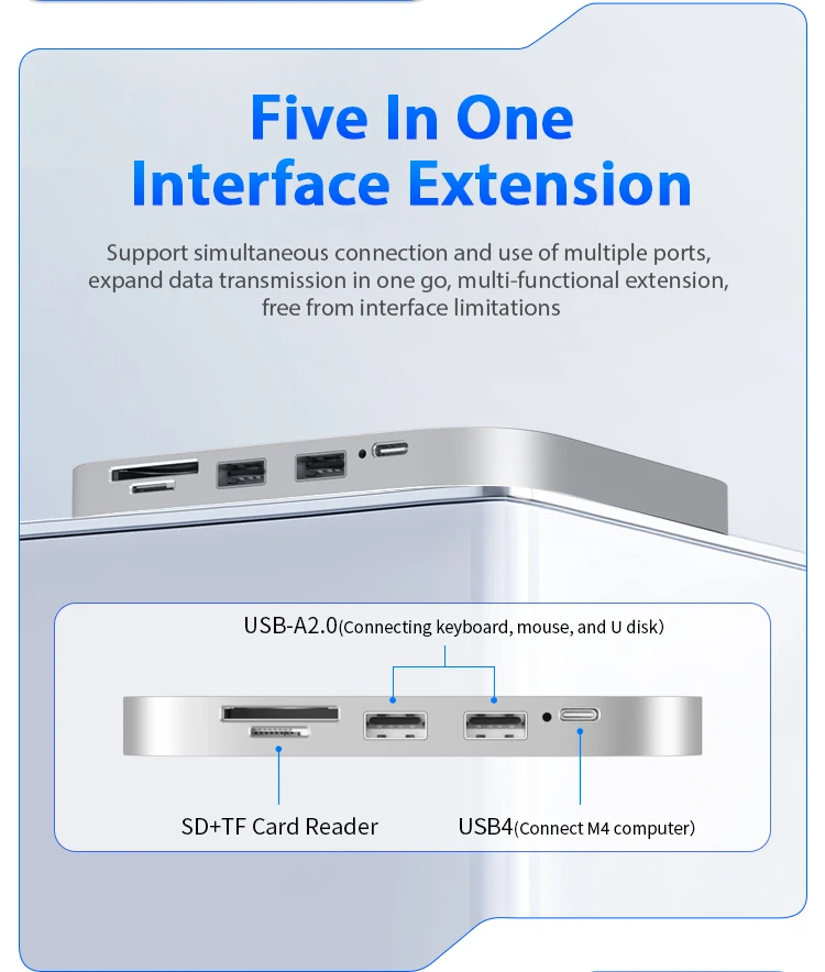 Features 5 ports for easy connectivity to multiple devices, including USB4, USB-A 2.0 ,SD and TF.