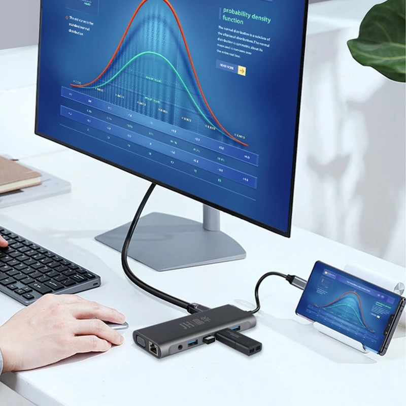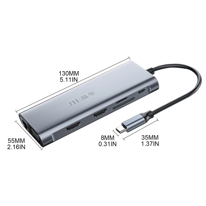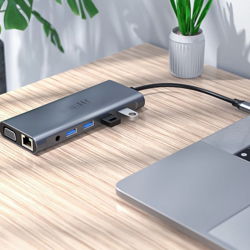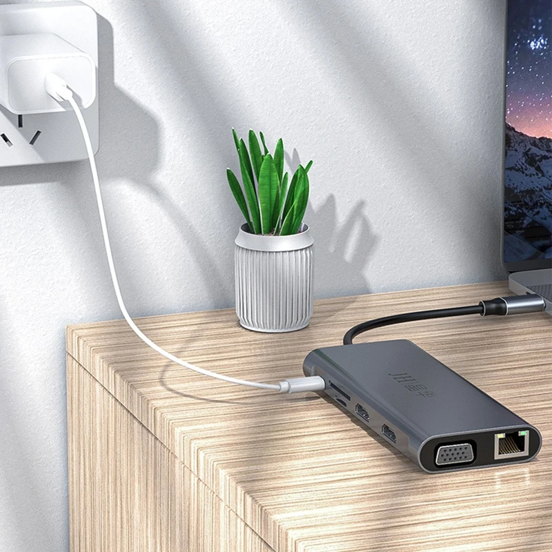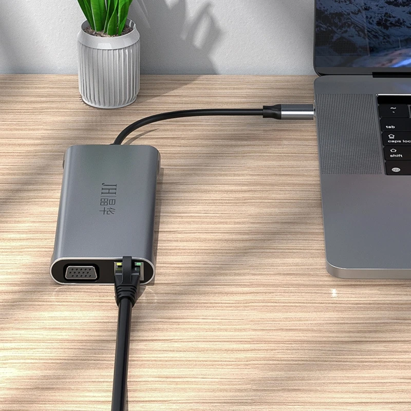 Con este adaptador múltiple USB C hub puedes extender fácilmente tu ordenador portátil desde un puerto tipo c a 12 puertos.