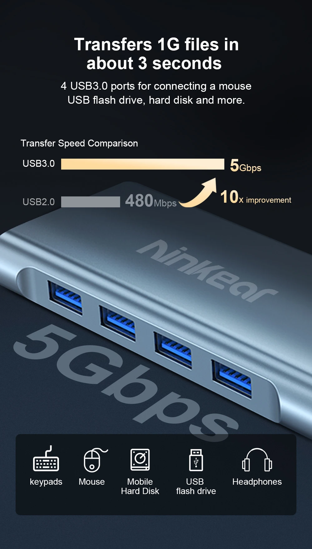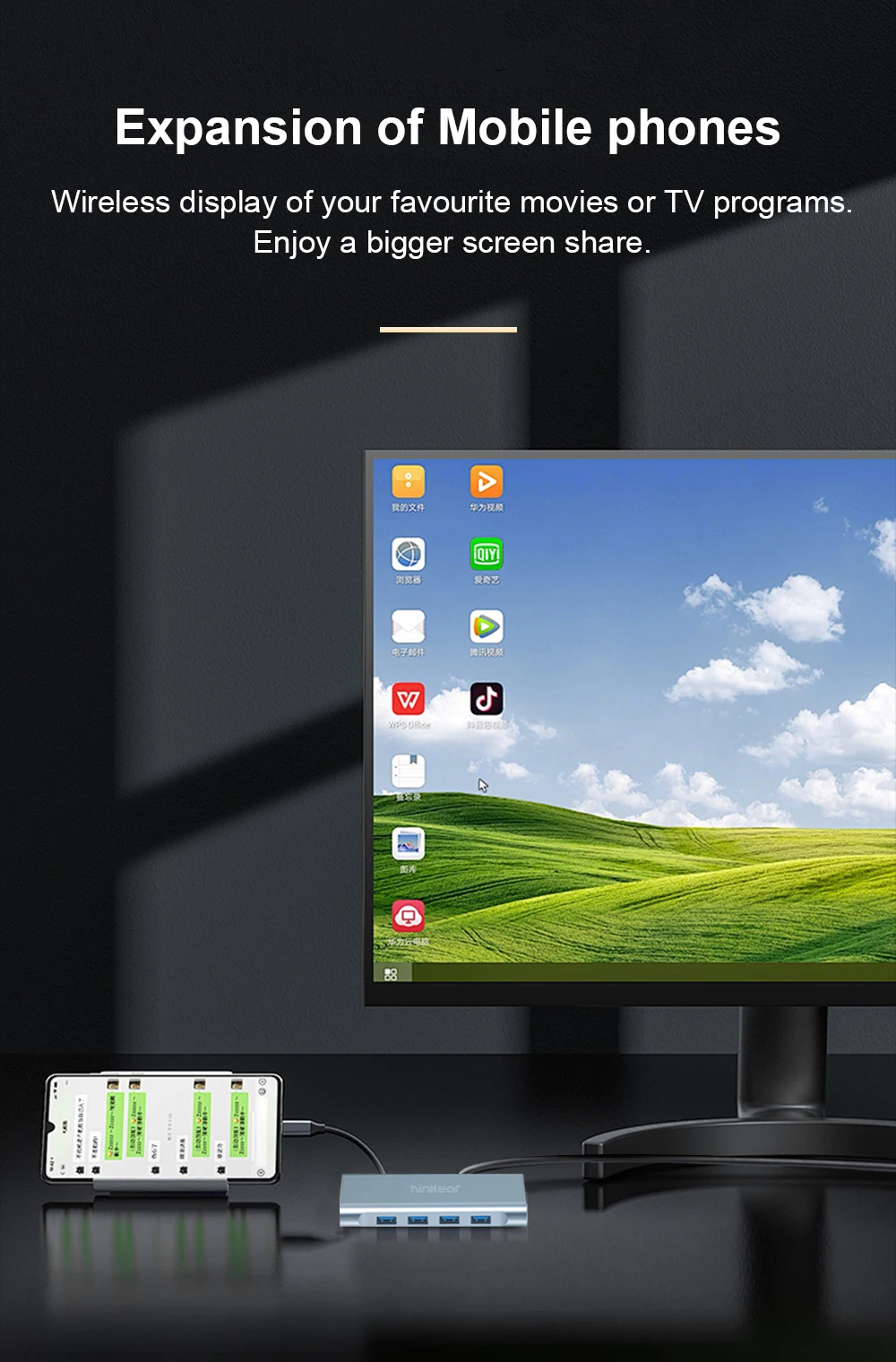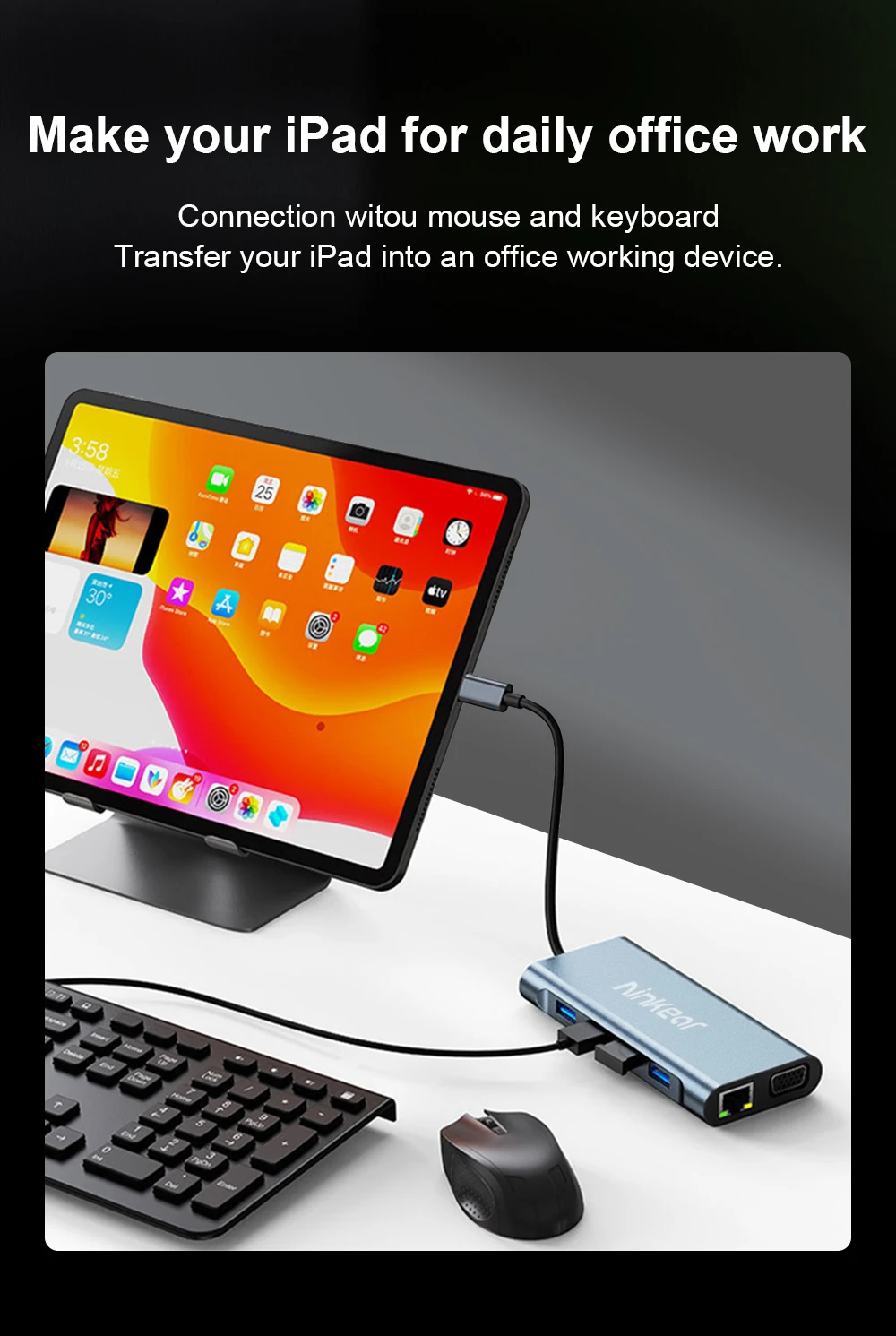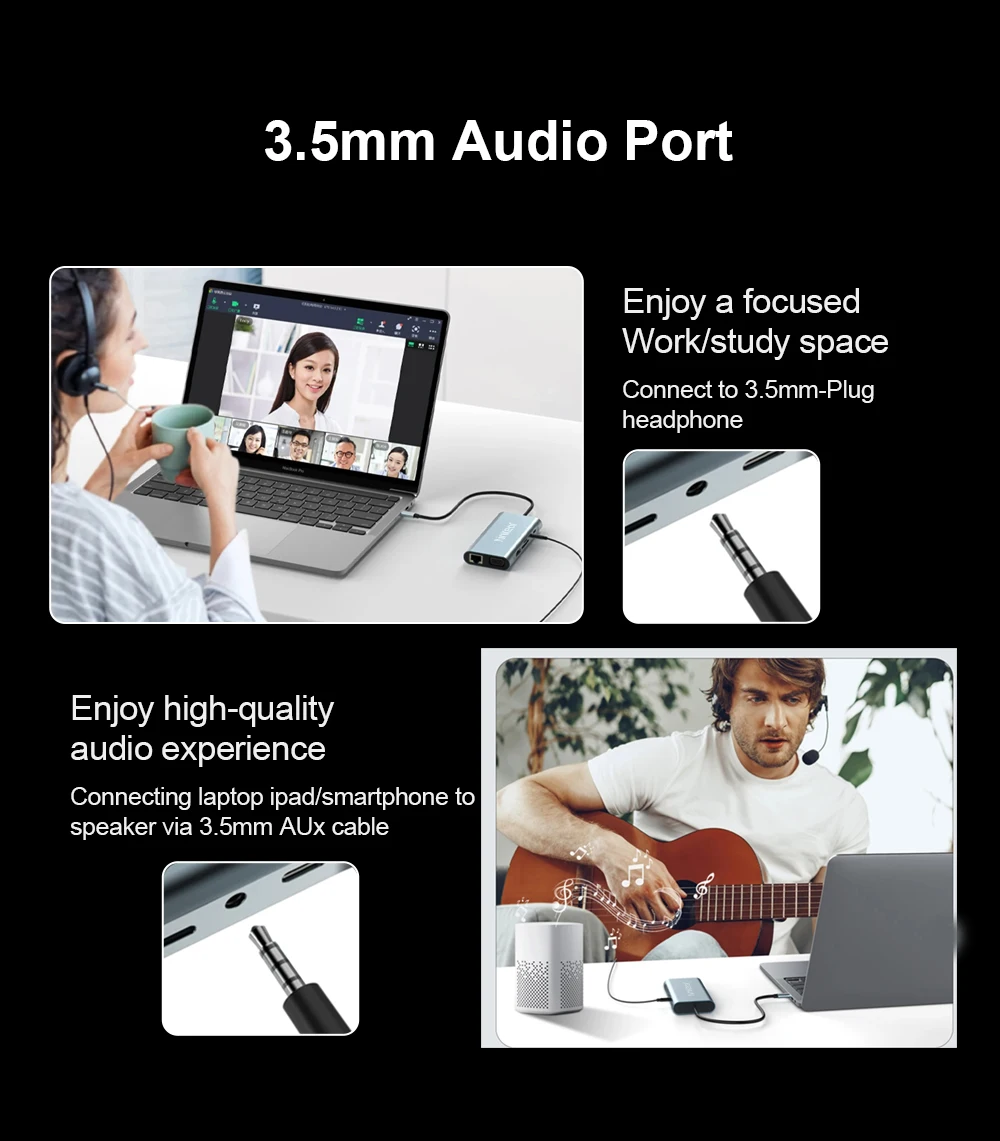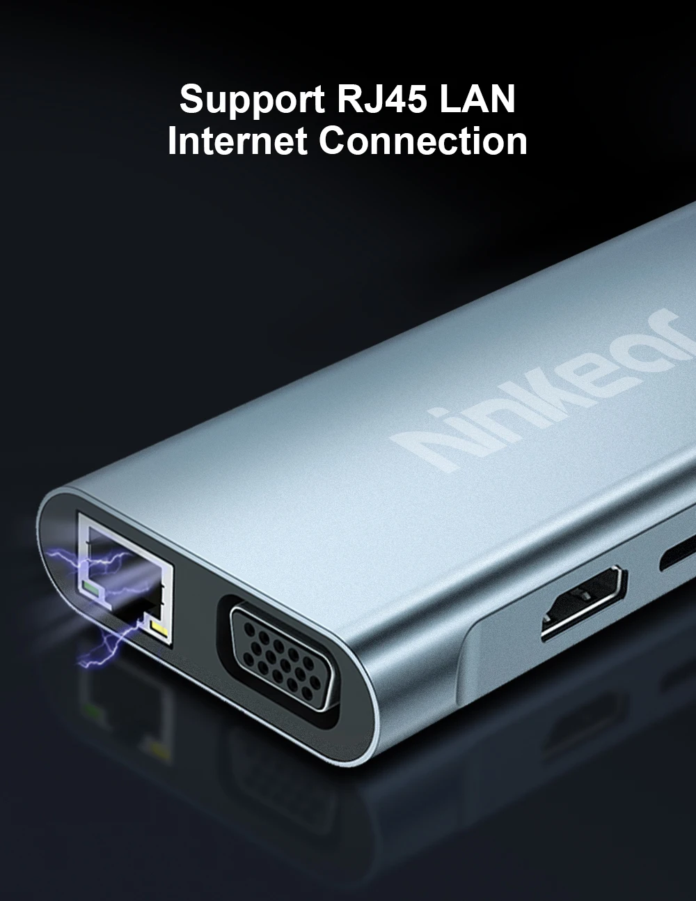 Estación de acoplamiento Ninkear 11 en 1 Resolución HD 4K 30Hz USB2.0*3 USB3.0*1 Resolución VGA 1080P /60Hz Carcasa de aleación de aluminio