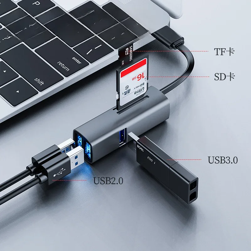 Comprar Estación de acoplamiento para ordenador portátil, adaptador multipuerto para MacBook/Dell/HP/Lenovo, 3/2,0 en 1, USB C, 5/8 SD/TF, HDMI