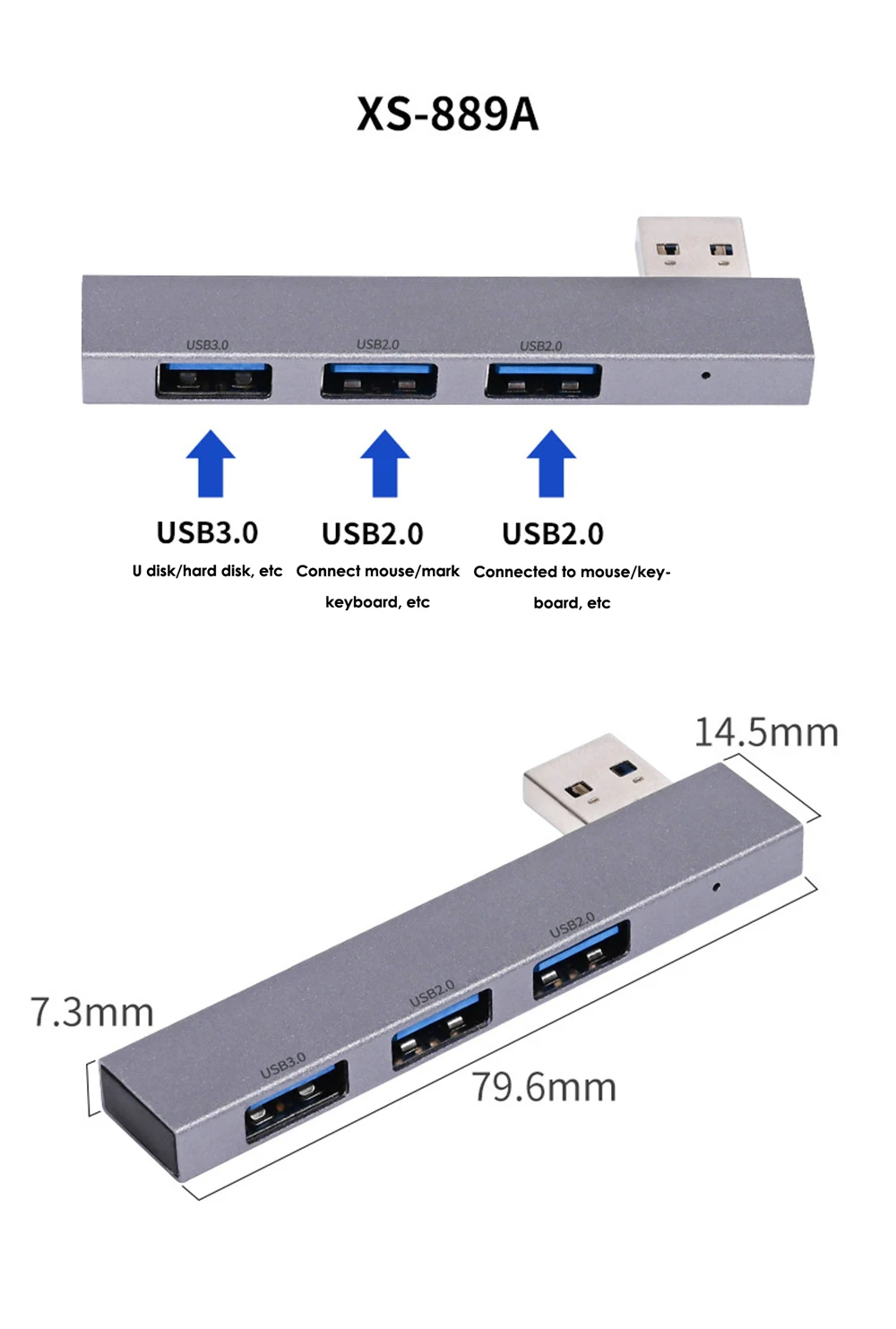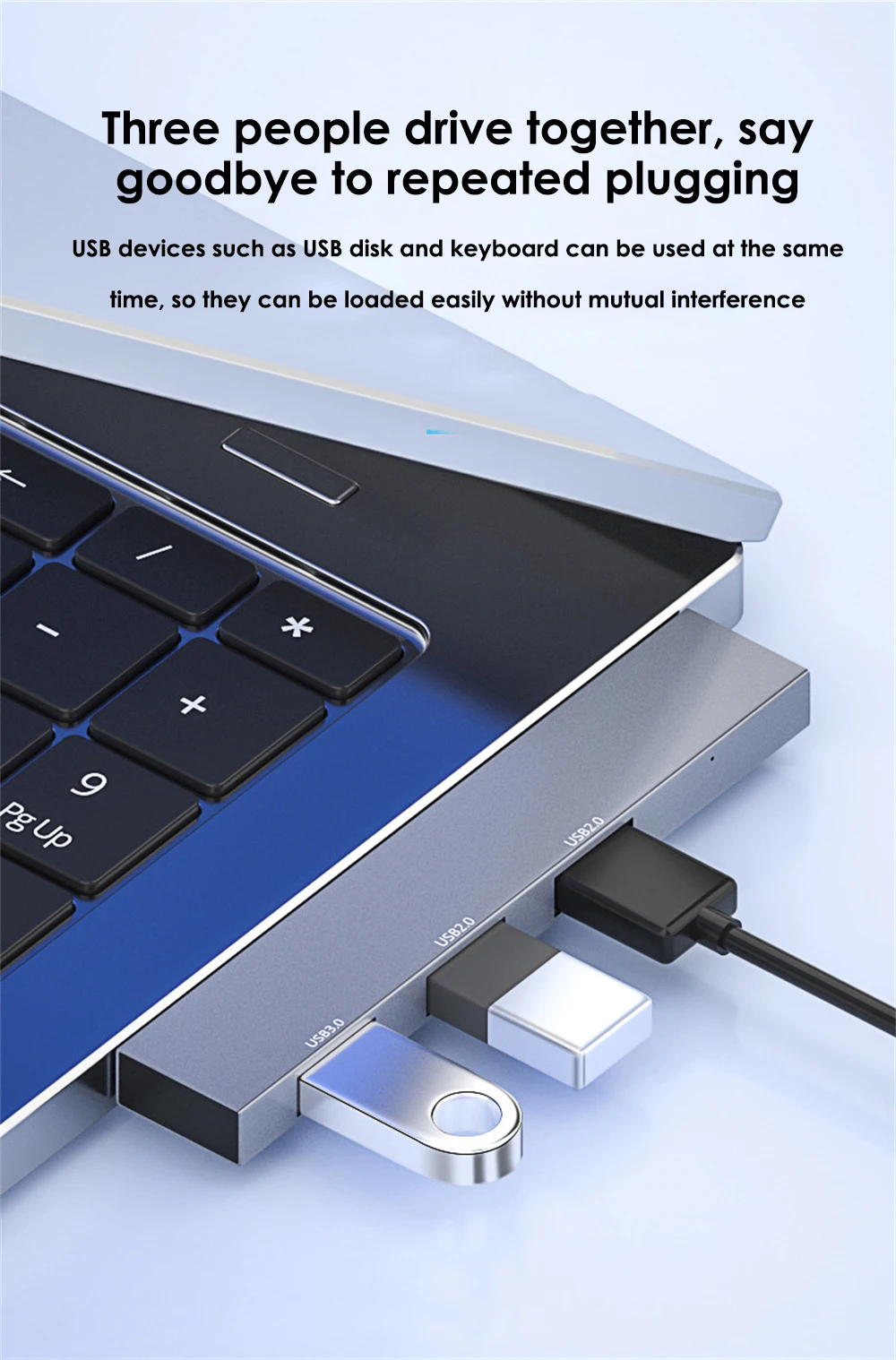 2. 【 Tres en 】Se pueden cumplir los requisitos de expansión multipuerto porque este concentrador USB utiliza un diseño 3 en 1. Además, tiene una buena disipación del calor, por lo que puede usarlo con más seguridad.