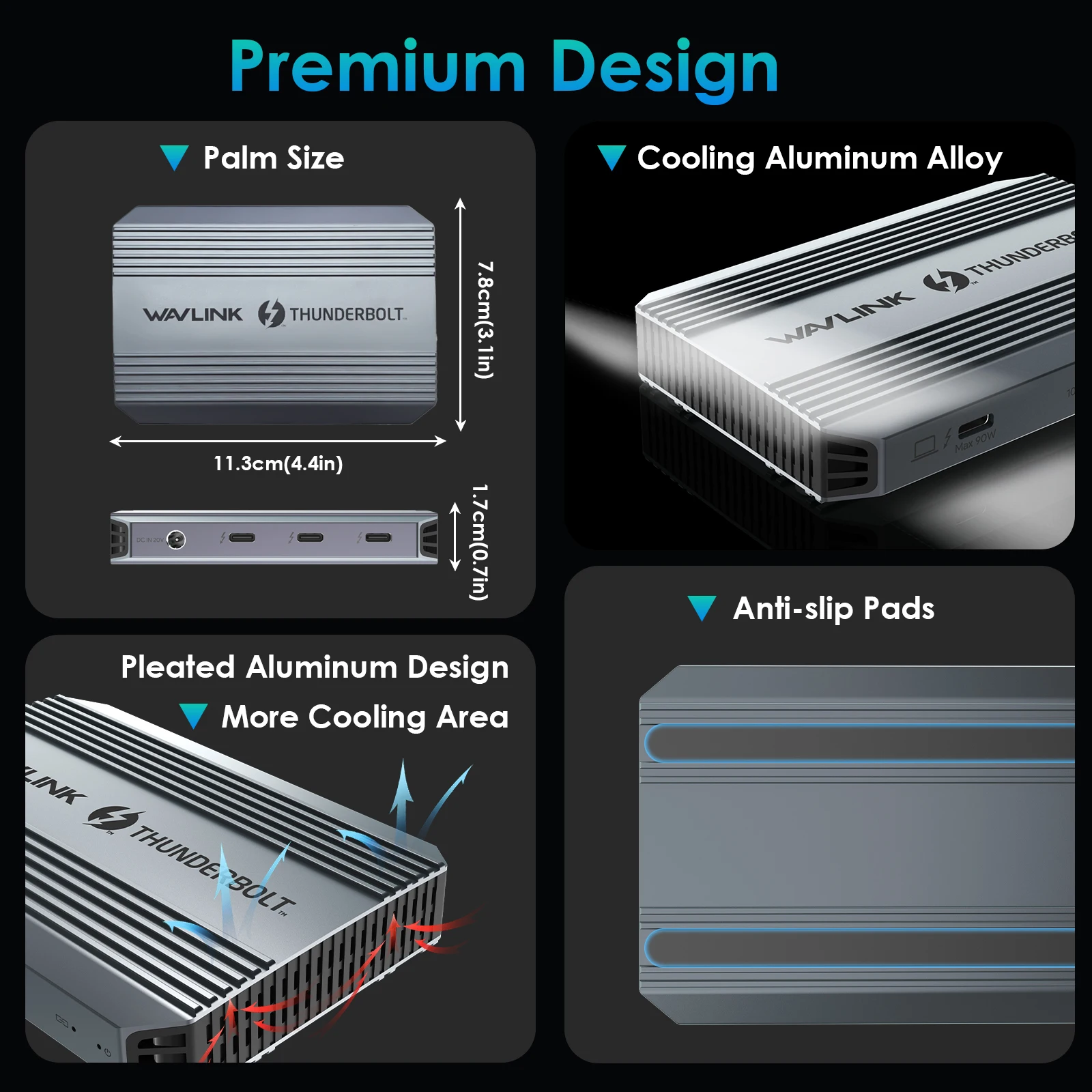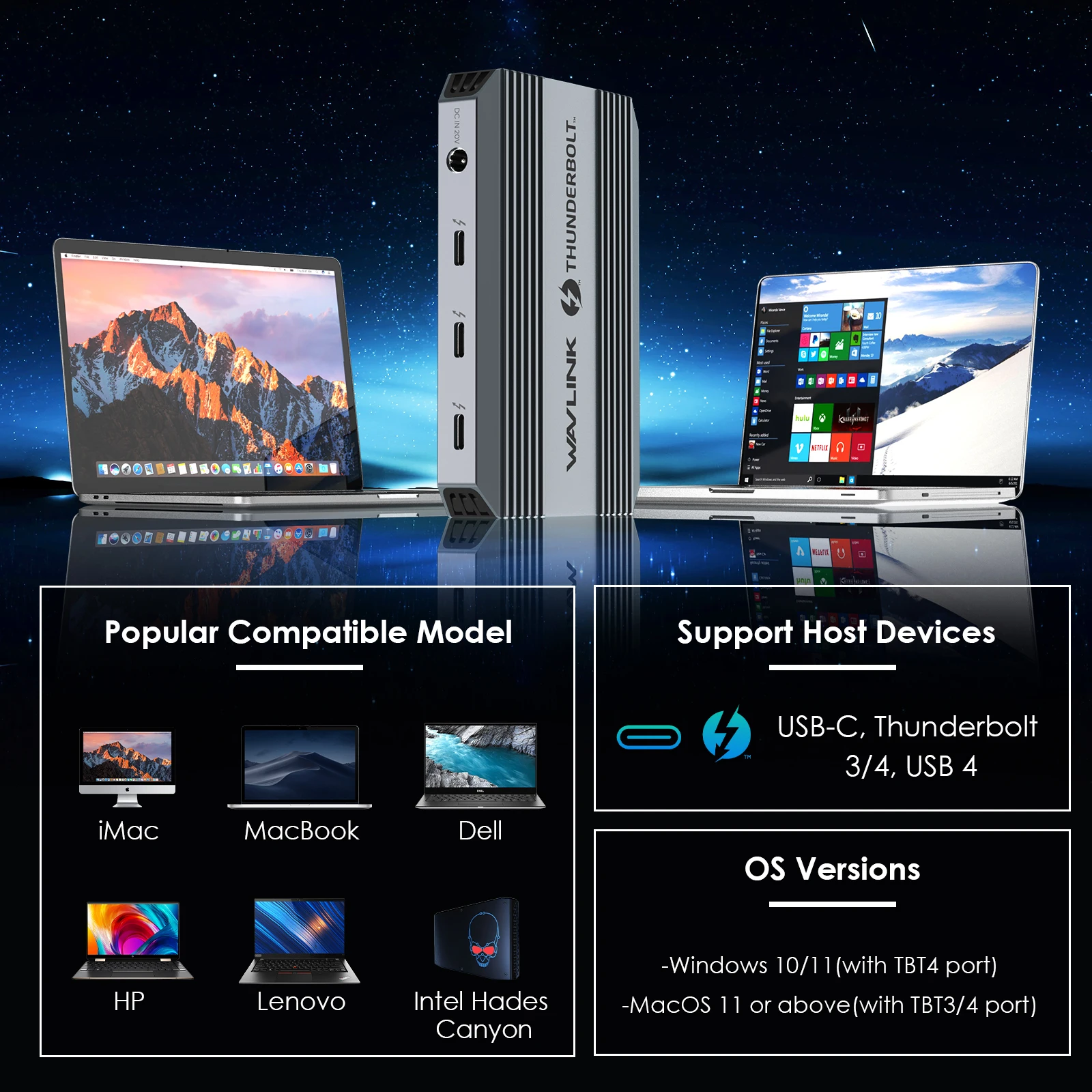 Comprar Estación de acoplamiento para ordenador portátil WAVLINK 5 en 1 Thunderbolt 4, carga PD de 90W, pantalla individual 8K o Dual 4K para MacBook Pro/Air M1 M2 M3