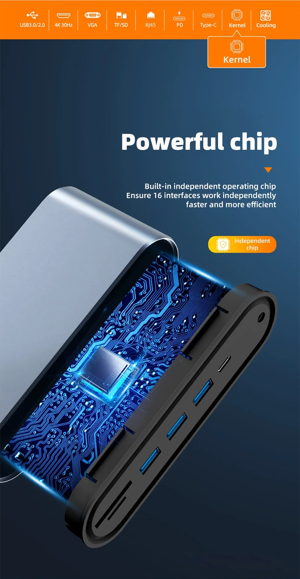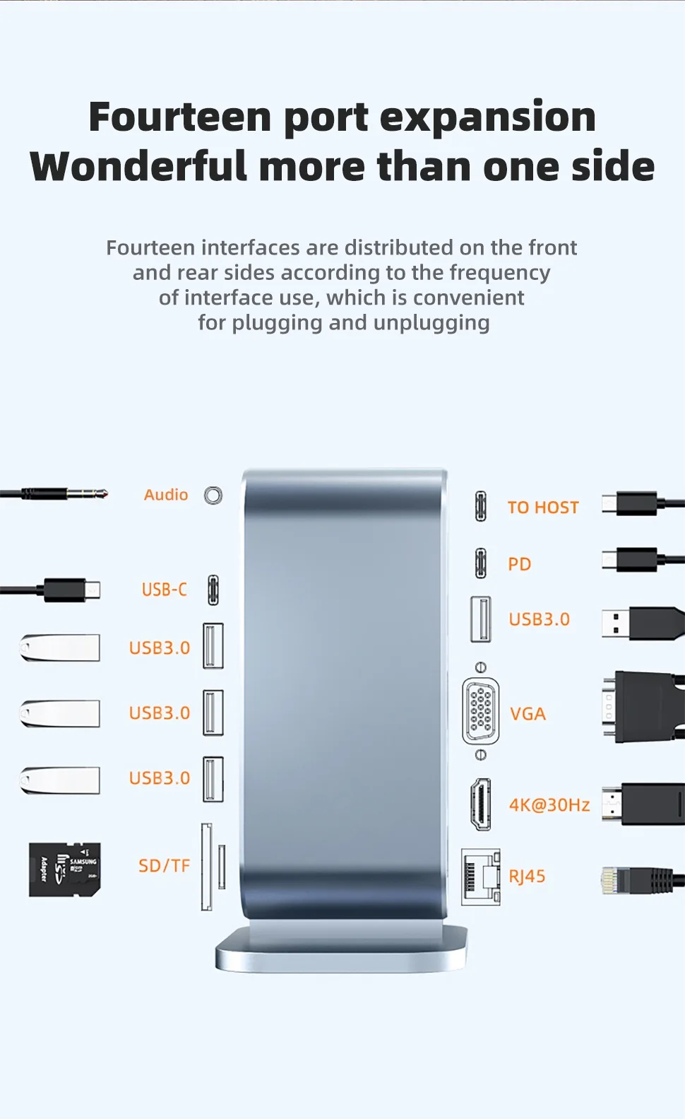 2. La expansión de doce puertos es más que unilateral. Los doce puertos se distribuyen en la parte delantera, trasera, izquierda y derecha de acuerdo con la frecuencia de uso de los puertos, lo cual es conveniente para enchufar y desenchufar.