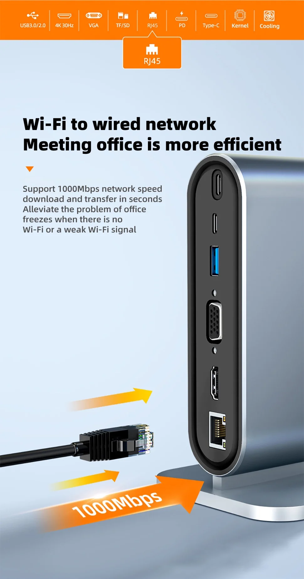7.Wi-Fi a la oficina de reuniones de la red por cable es más eficiente, admite descarga y transferencia de velocidad de red de 1000Mbps en segundos, alivia el problema de la congelación de la Oficina cuando no hay Wi-Fi o una señal Wi-Fi débil.