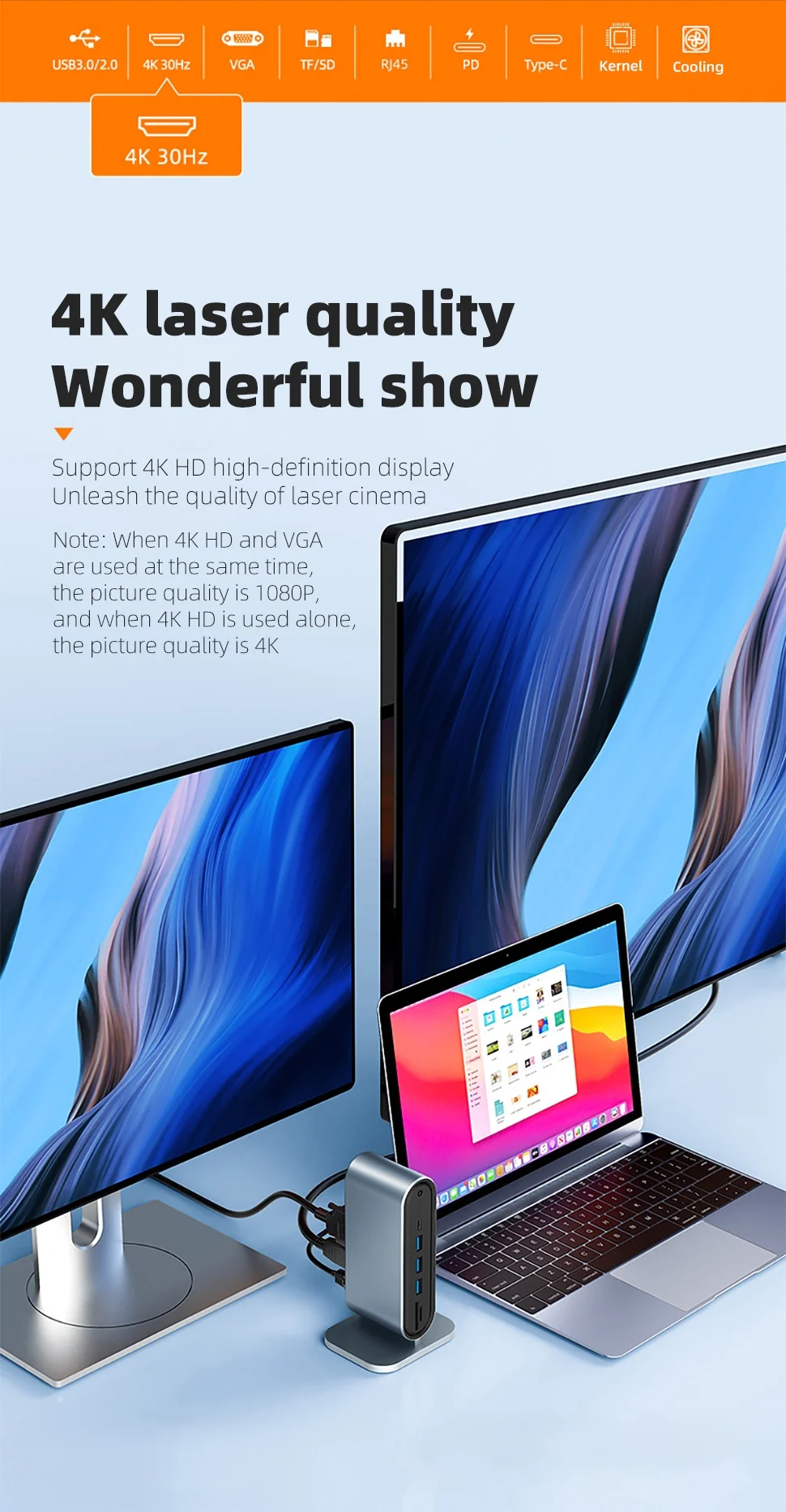 Comprar Estación de acoplamiento para ordenadores portátiles, concentrador USB 3,0 tipo C 12 en 1 a HDTV 4K, HD, RJ45, PD100W, lector de tarjetas TF/SD