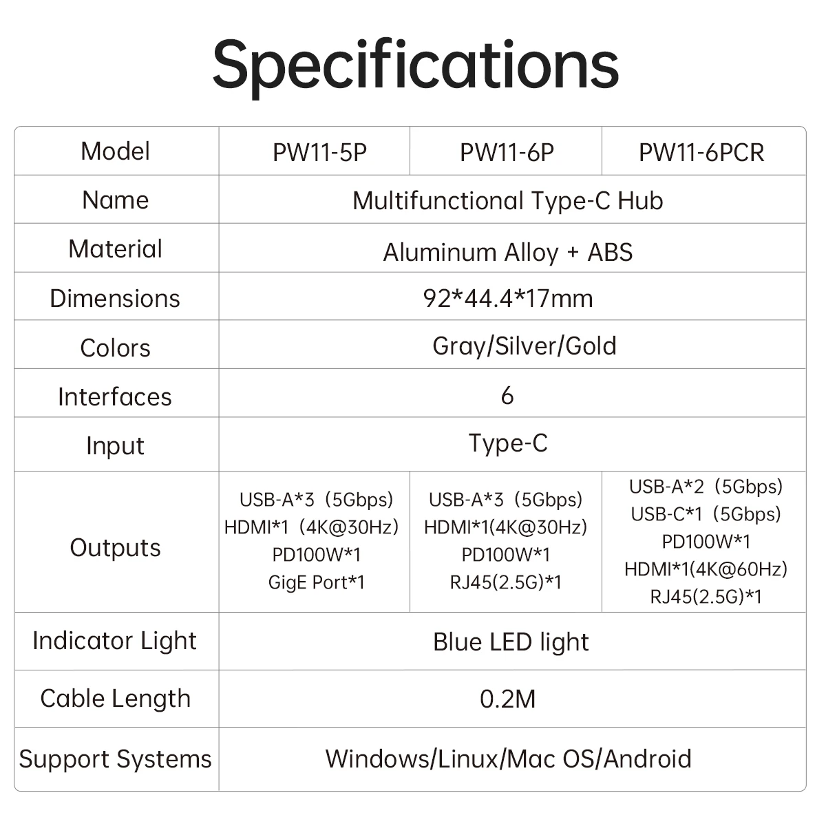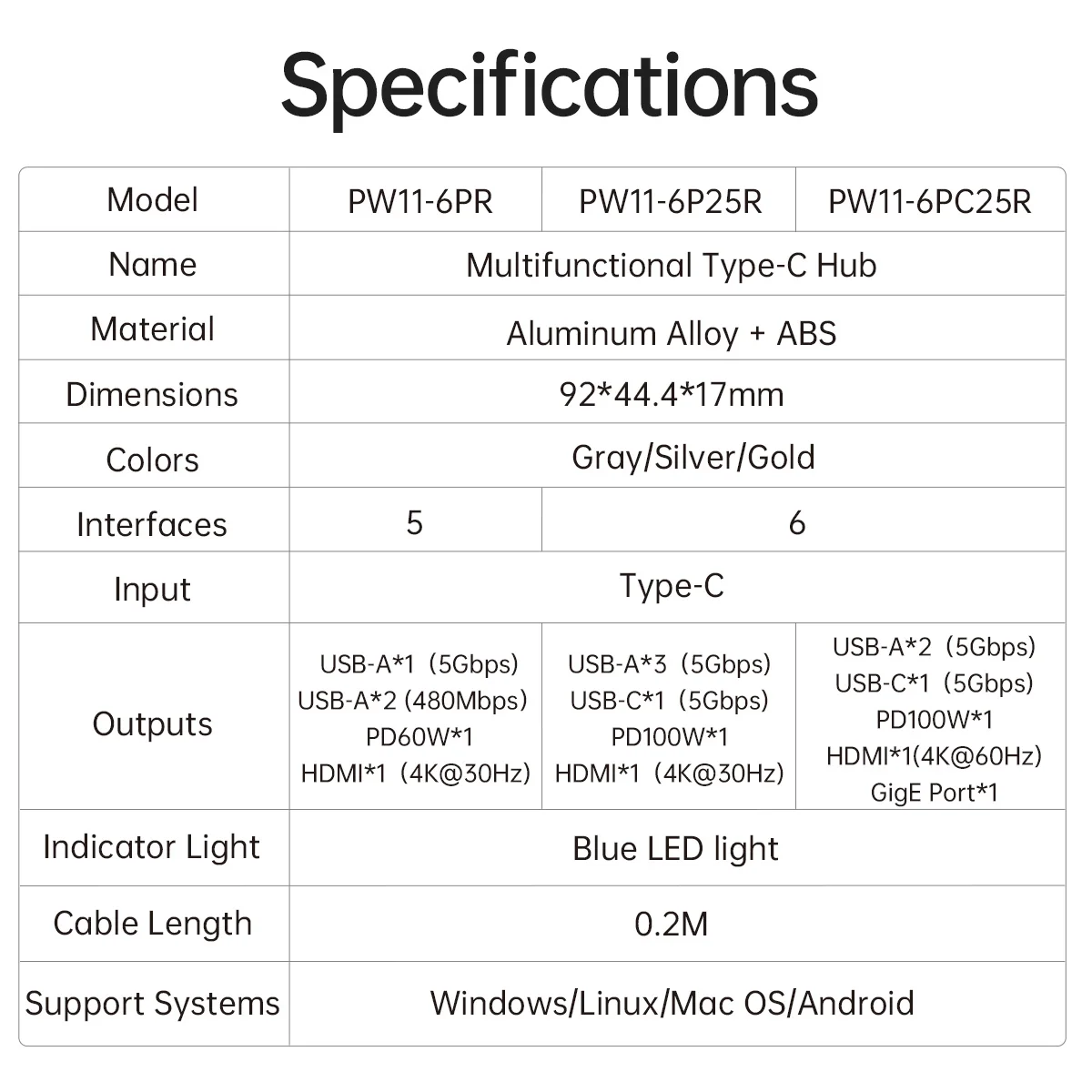 4. Gris 6 en 1 30Hz RJ45: 2x3(5Gbps) + compatible con HDMI * 1(4K @ 30Hz)+ RJ45(GigE)* 1 + PD100W * 1