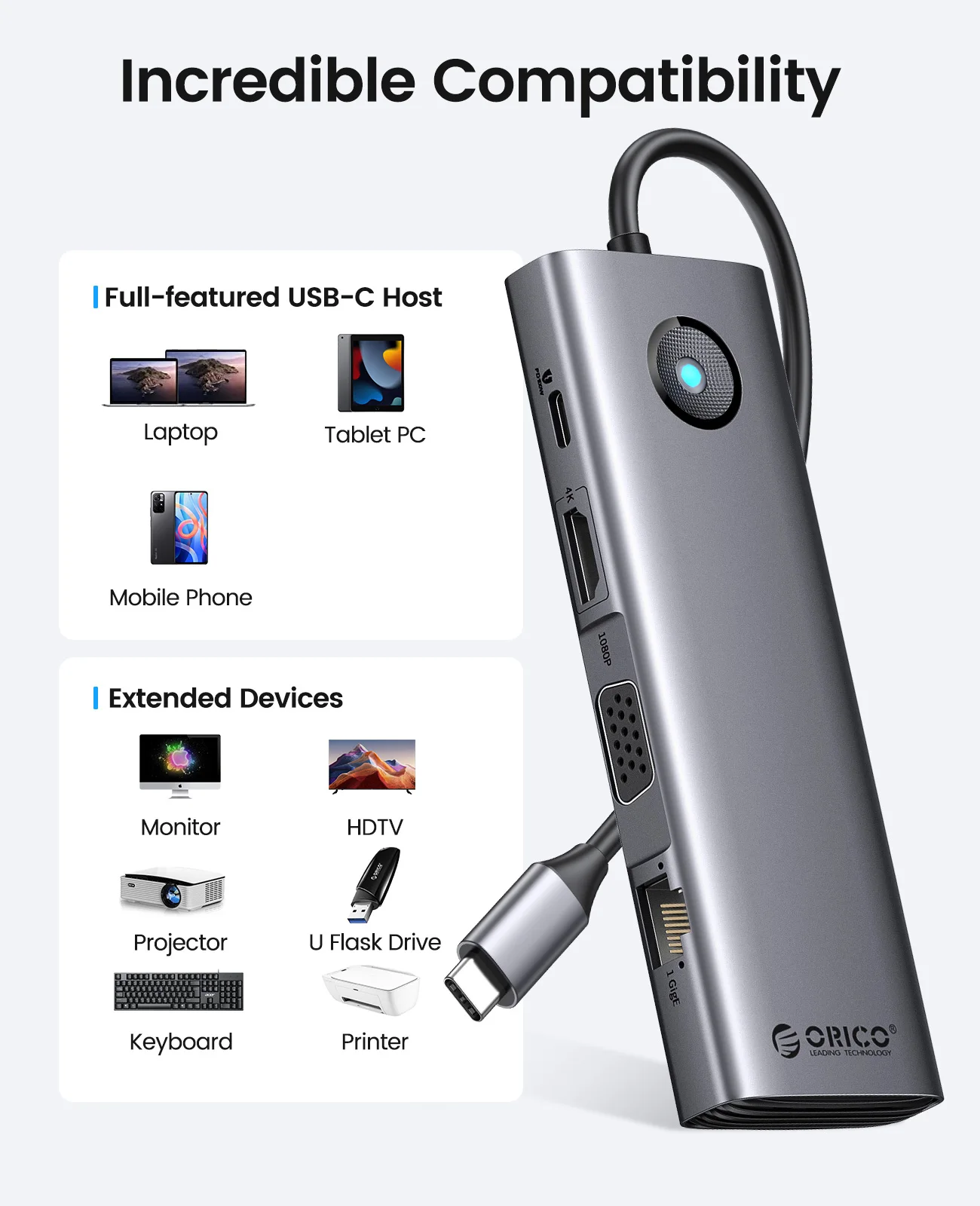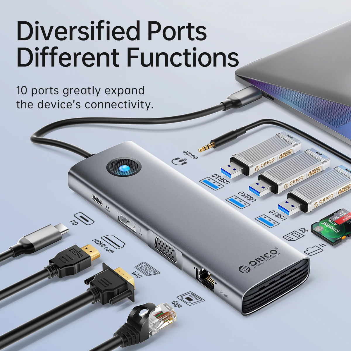 Comprar Estación de acoplamiento ORICO tipo C HUB a 4K60Hz HDMI, adaptador USB 3,0 compatible con carga RJ45 PD100W para Macbook Pro, accesorios para ordenador portátil