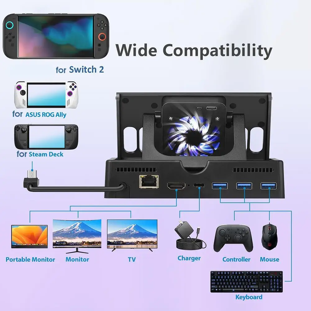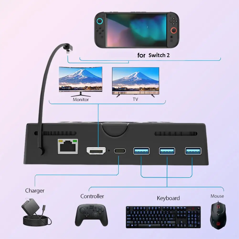 Comprar Estación de acoplamiento plegable, 3 puertos USB, 4K @ 60Hz, PD100W, Gigabit Ethernet, accesorios para Nintendo Switch 2