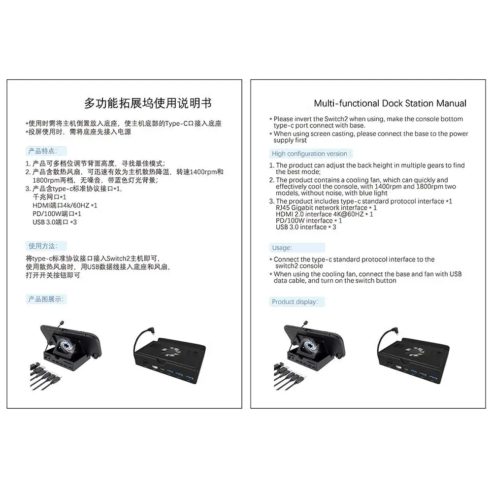 1.Cuando SWITCH2 usa la base, solo el puerto TYPE-C inferior admite la proyección de pantalla, por lo que la máquina se coloca boca abajo al proyectar, y el puerto TYPE-C superior es solo un puerto de carga.
