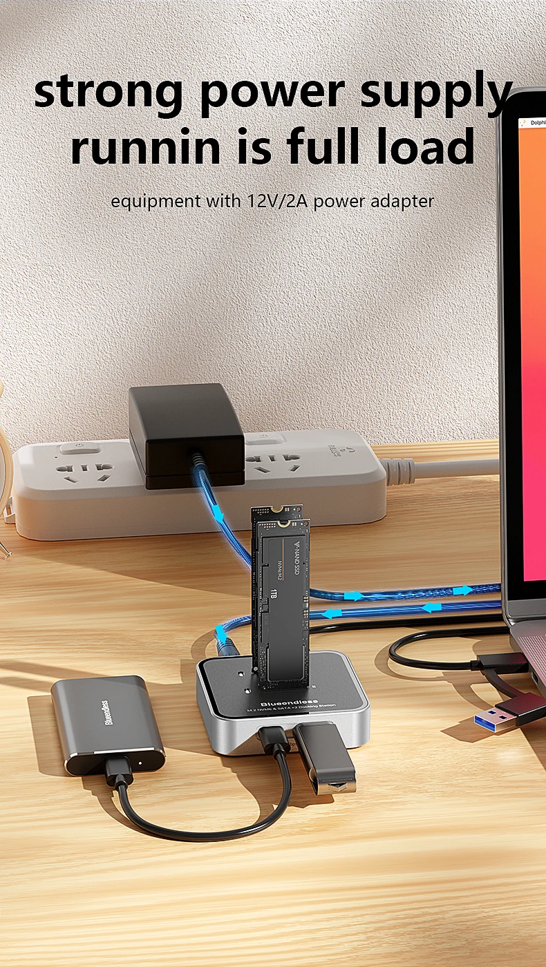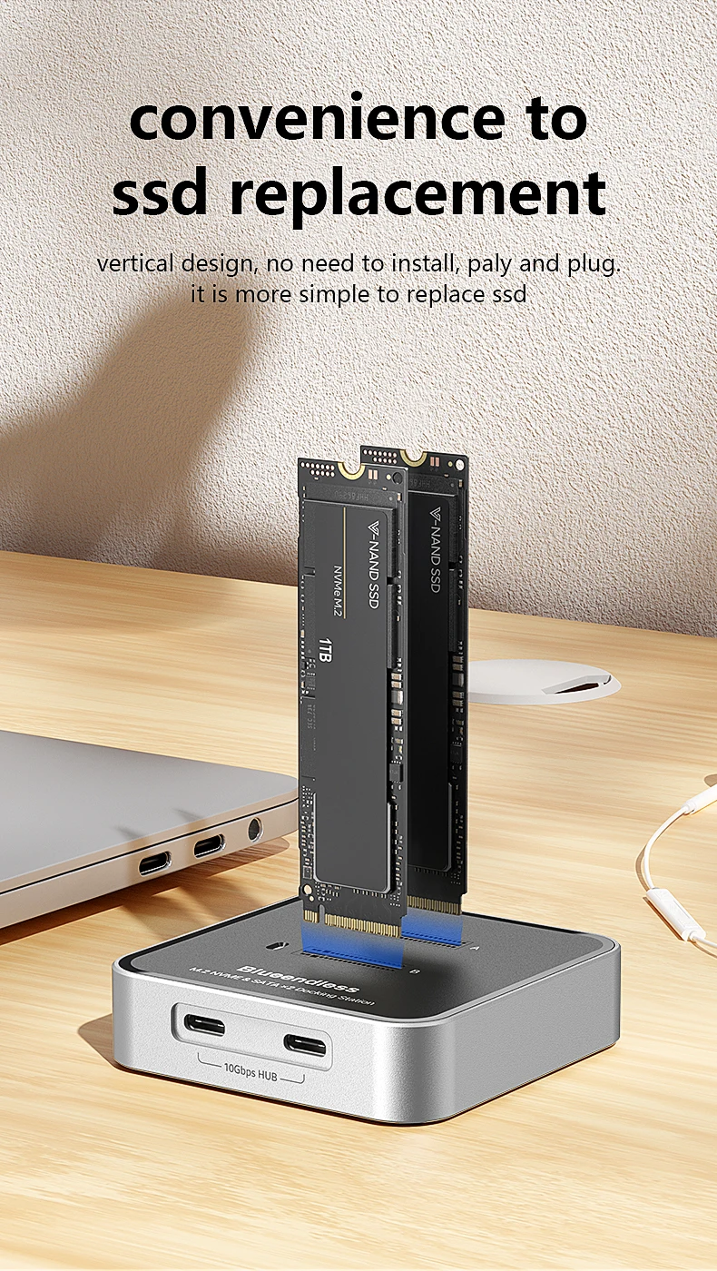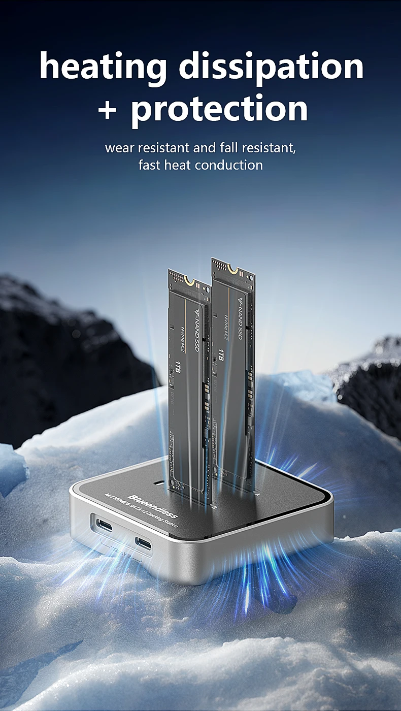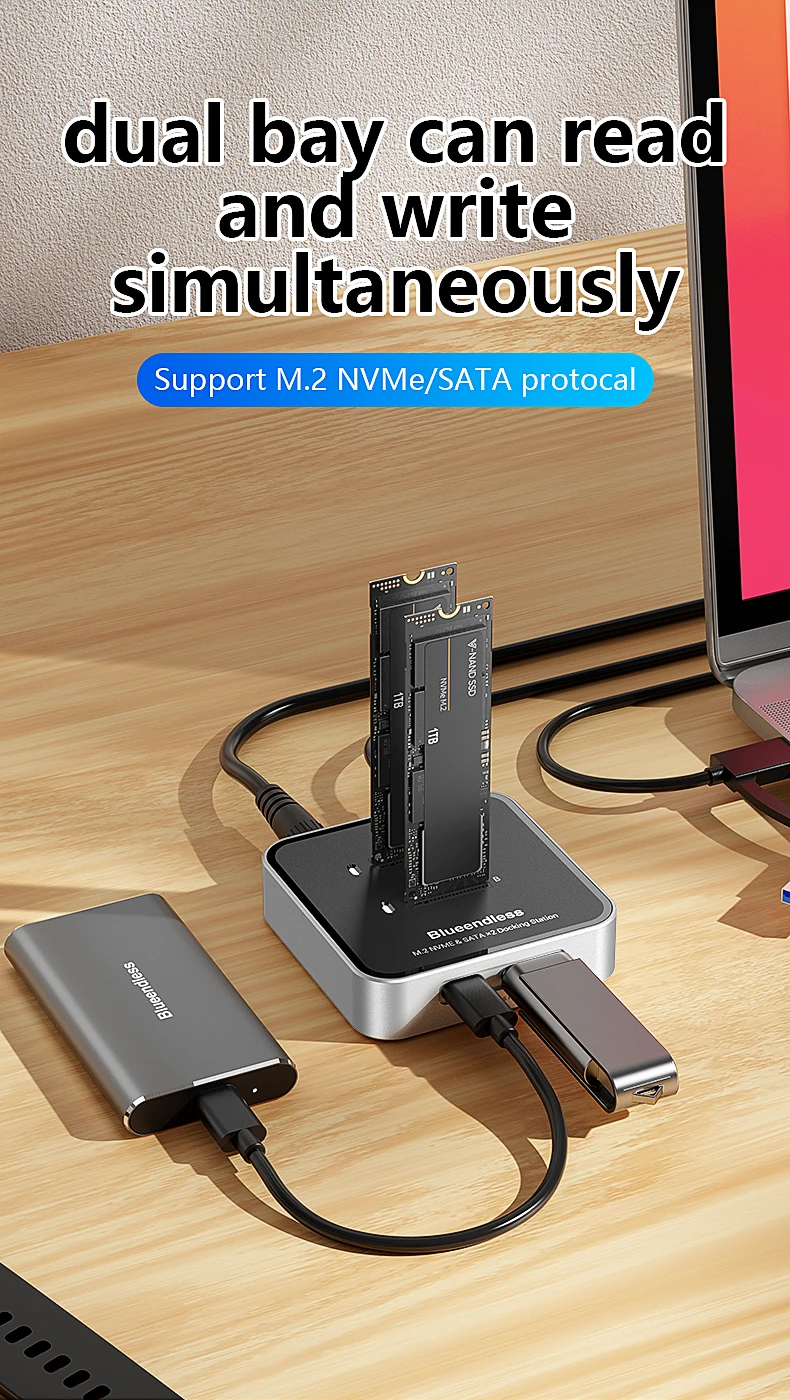 Estación de acoplamiento SSD con protocolo Blueendless de 2 bahías M.2 NVMe/SATA