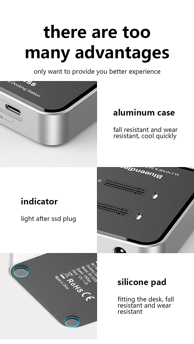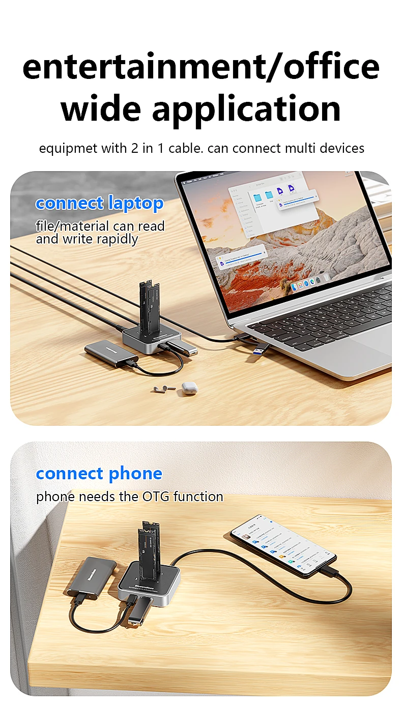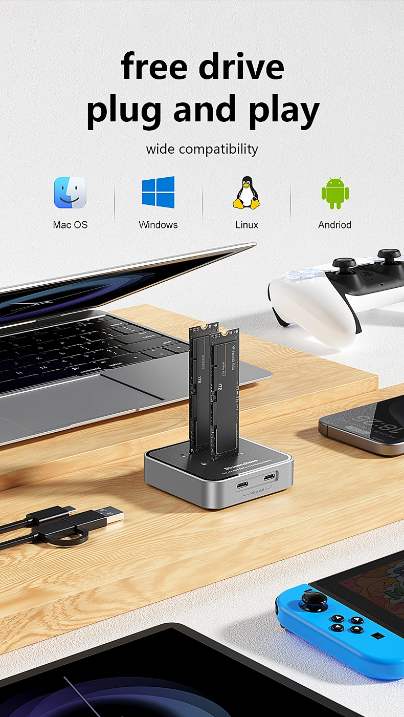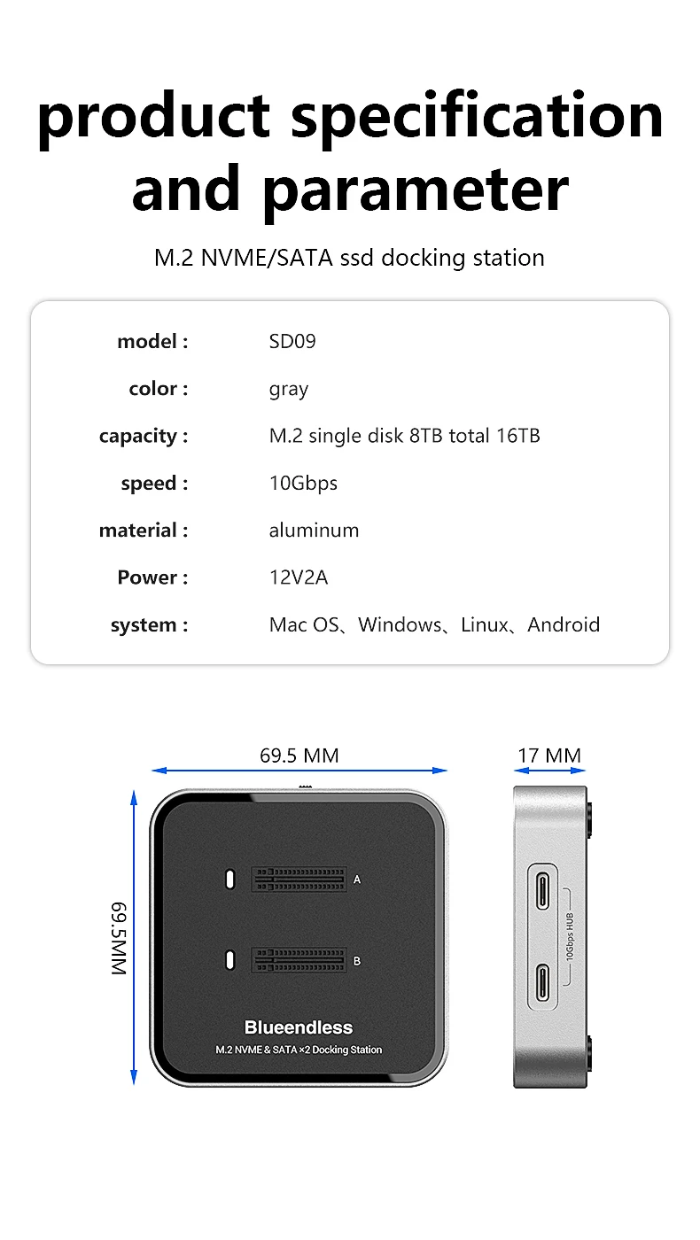 Estación de acoplamiento SSD con protocolo Blueendless de 2 bahías M.2 NVMe/SATA
