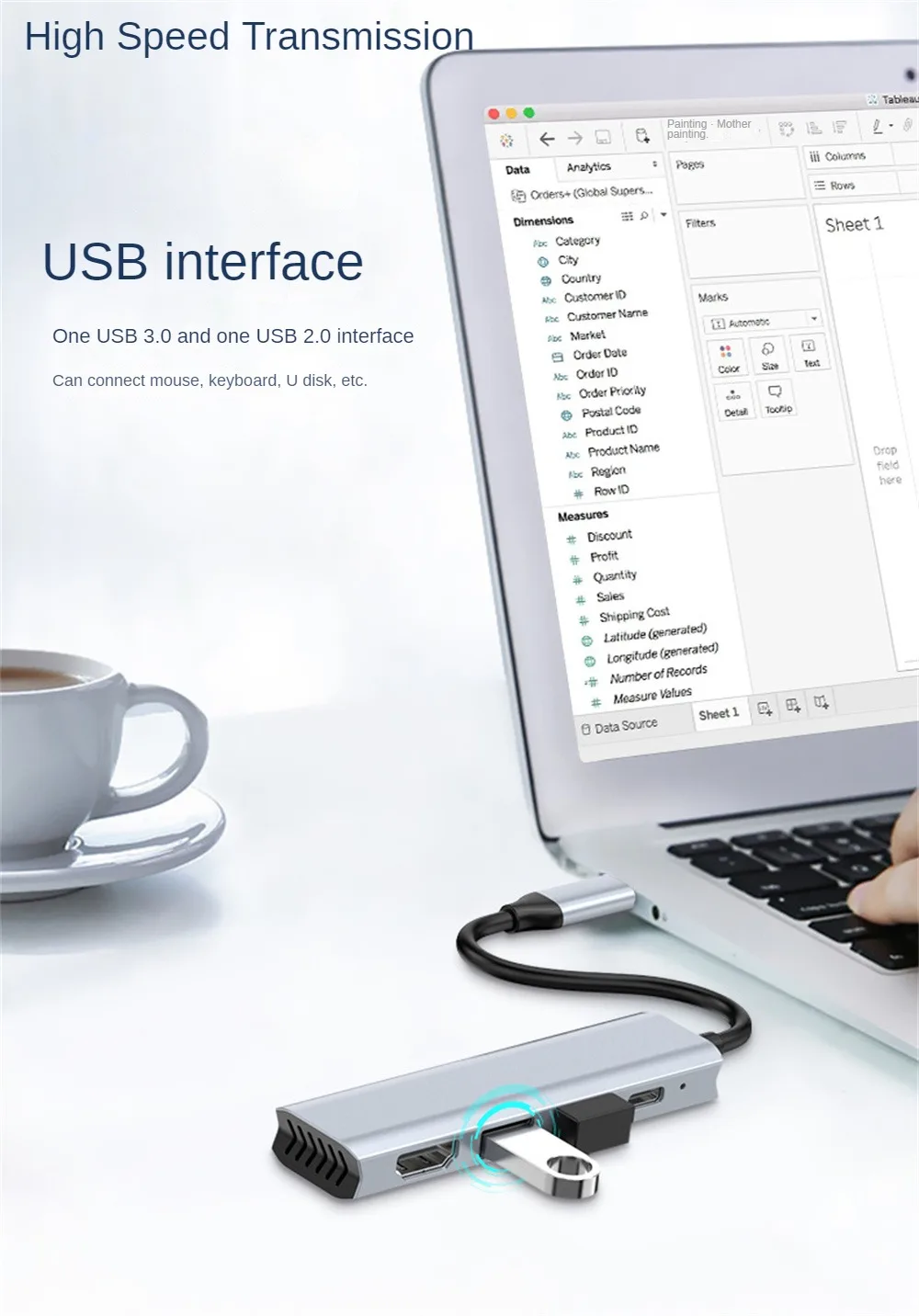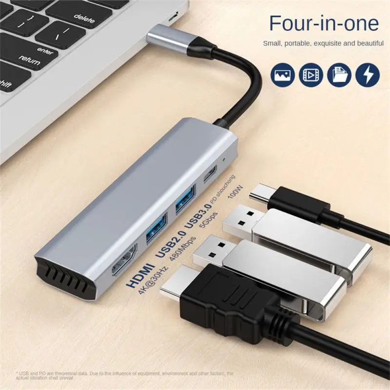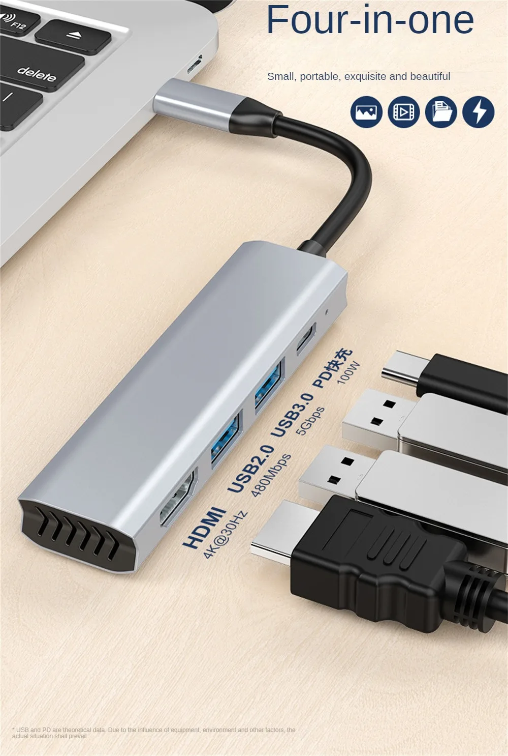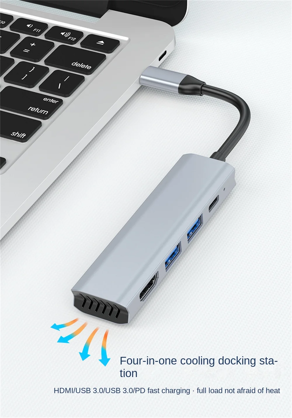 4 En 1 Tipo C estación de acoplamiento Hub USB3.0 Hub Universal Multi Splitter adaptador HDMI compatible con accesorios de computadora