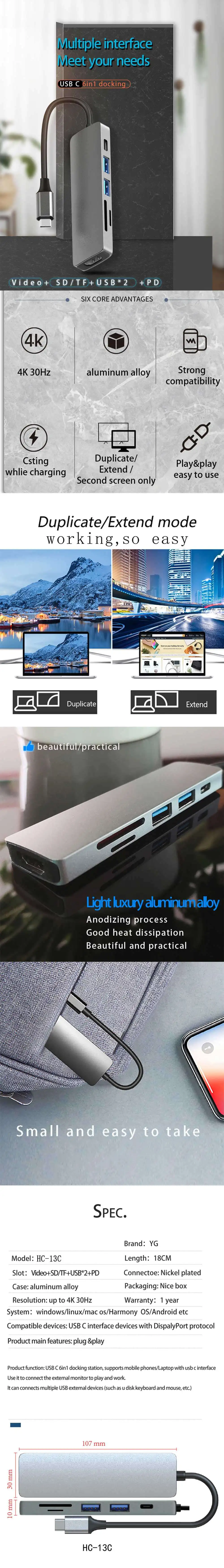 Comprar Estación de acoplamiento tipo C 6 en 1, adaptador divisor de concentrador de USB-C con USB3.0 x 2 PD3.0, 4K, compatible con ranura para lector de tarjetas SD/TF