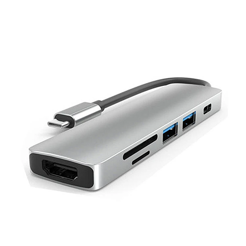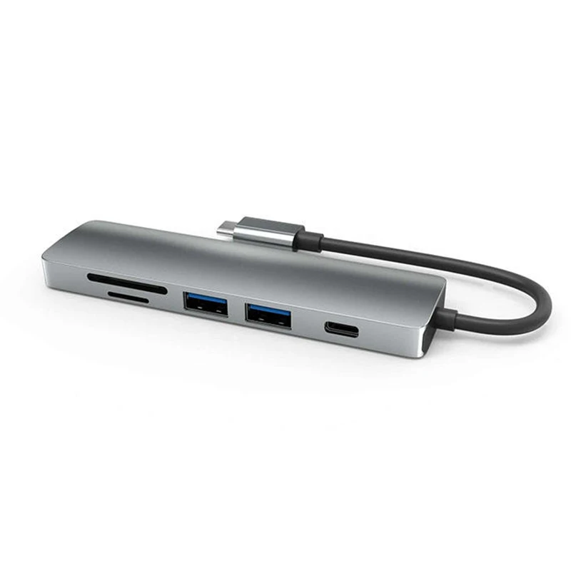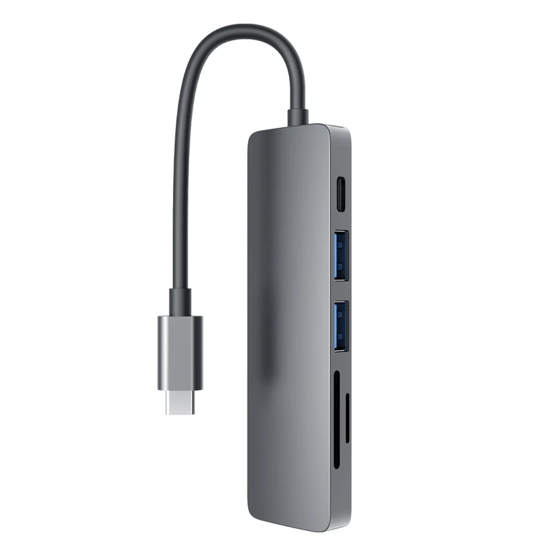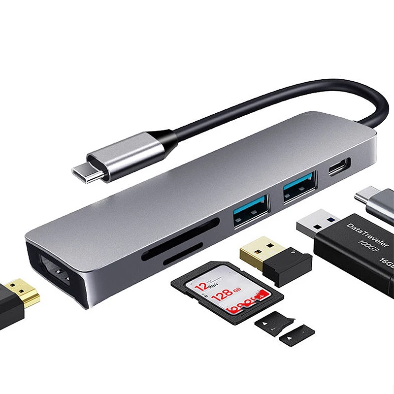 Comprar Estación de acoplamiento tipo C 6 en 1, adaptador divisor de concentrador de USB-C con USB3.0 x 2 PD3.0, 4K, compatible con ranura para lector de tarjetas SD/TF