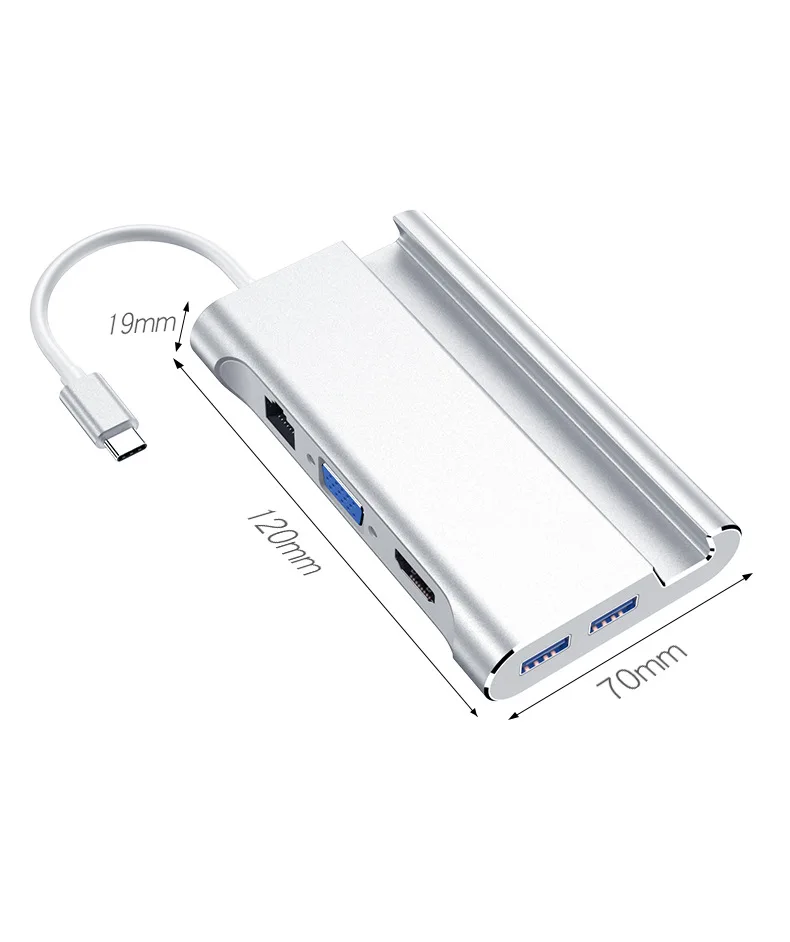 Estación de acoplamiento tipo C compatible con HDMI 4K USB 3,0 VGA RJ45 PD USB C Hub para computadora portátil Macbook Pro HP Surface DELL Lenovo Samsung
