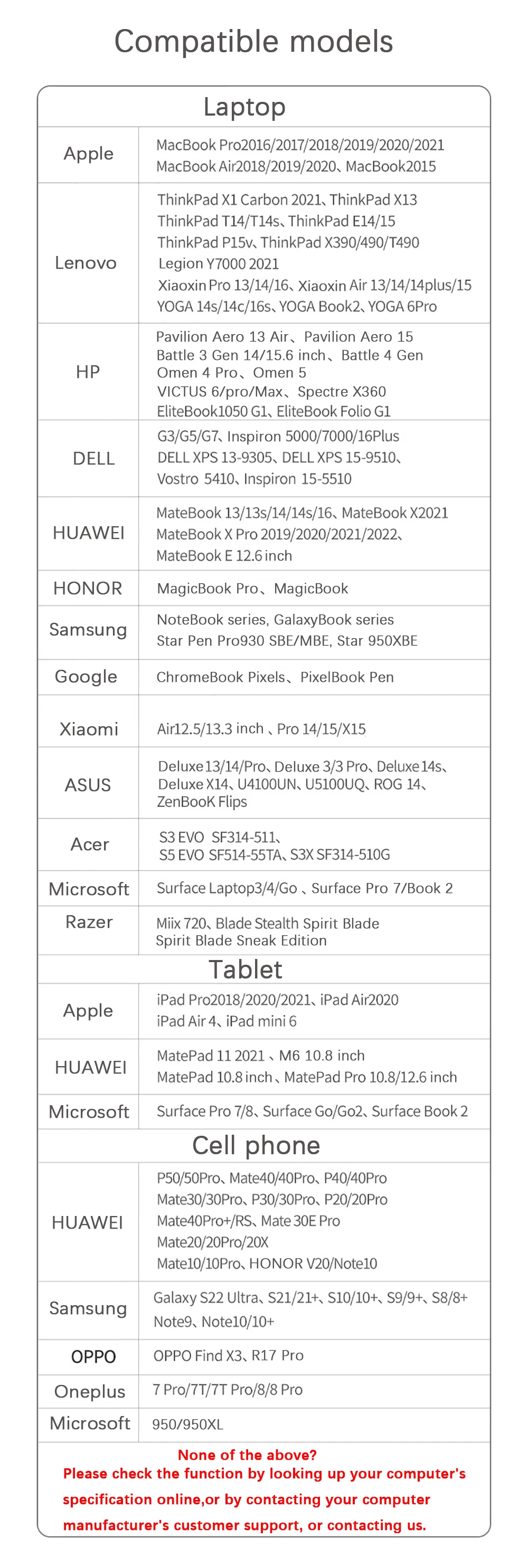 Para HP Pavilion X2/Spectre 13(no admite carga PD)/EliteBook Folio G1/Envy 13(no admite carga PD)