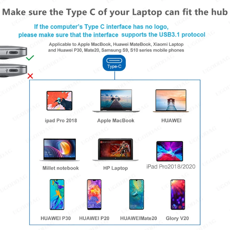 3. Tres puertos USB 3,0 de alta velocidad, transmisión de datos de velocidad de hasta 5Gbps, y puede conectar hasta dos periféricos de hasta el (como teclado, ratón, altavoz, etc.) A la computadora portátil de La.