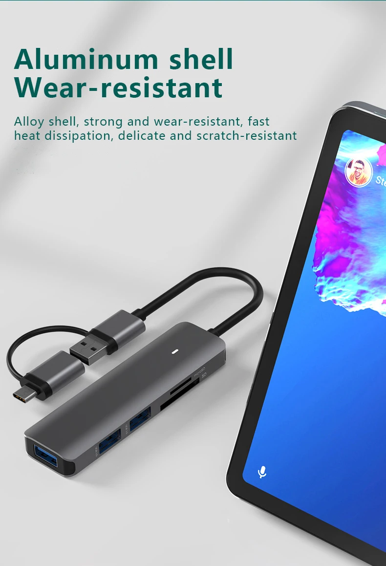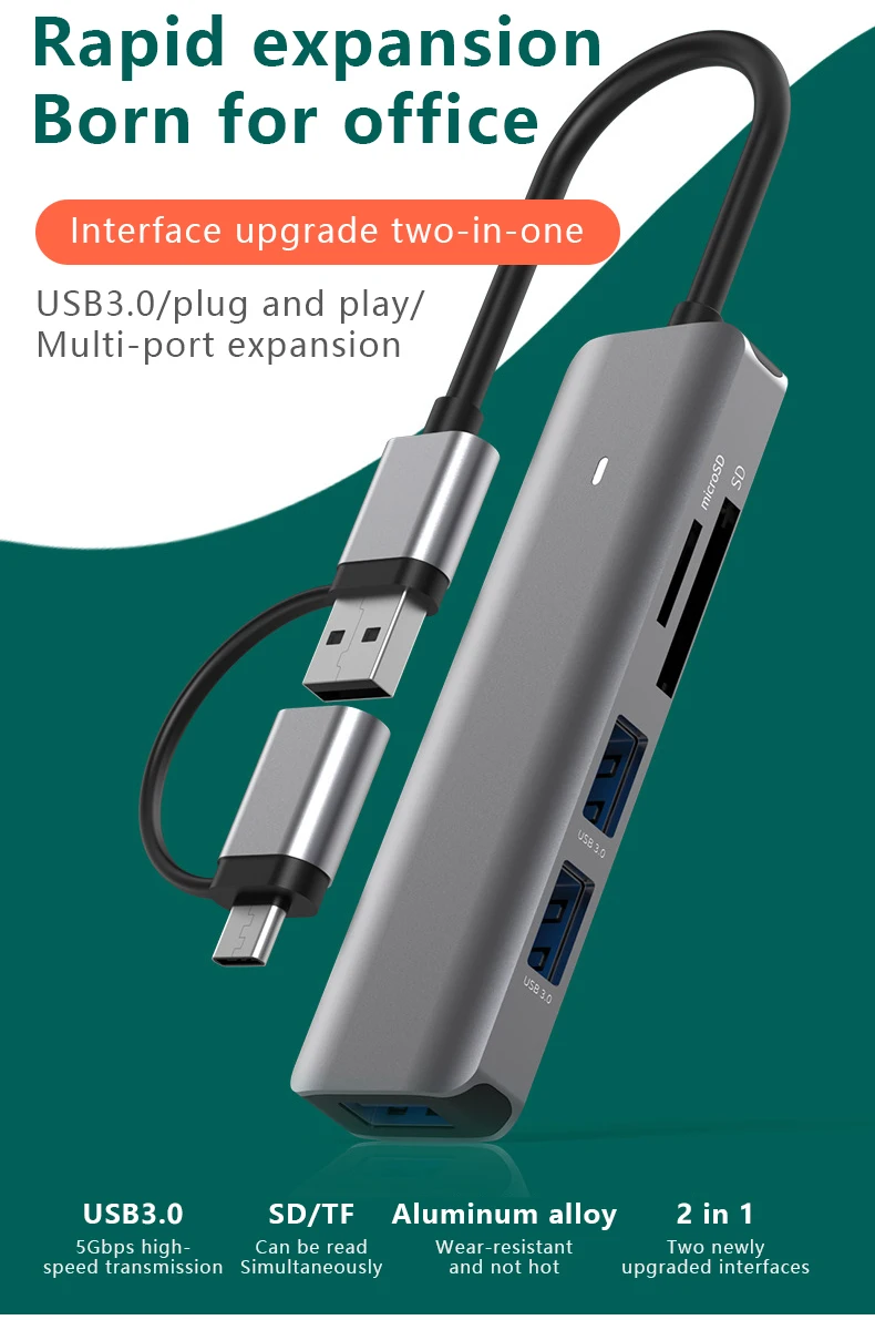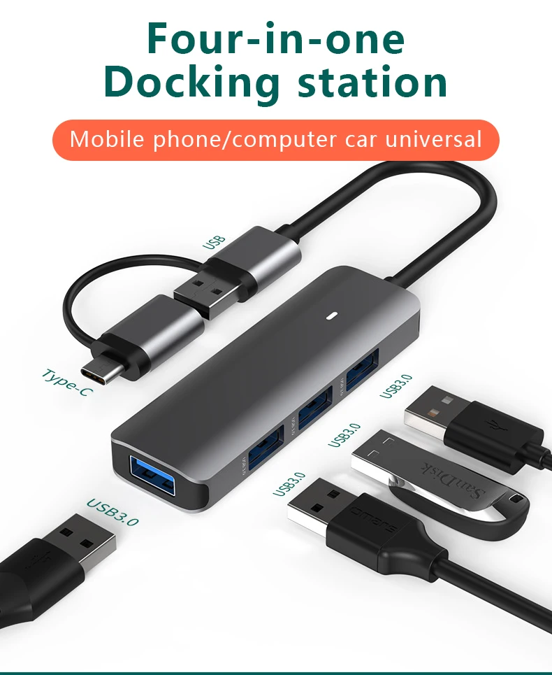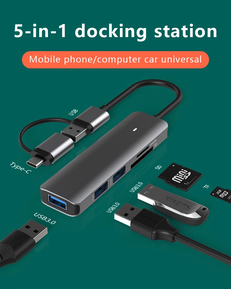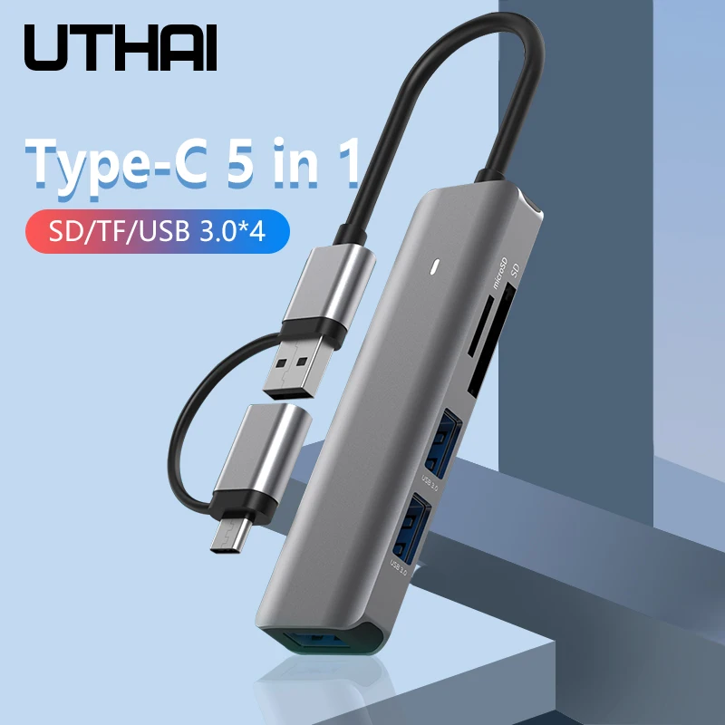 Comprar Estación de acoplamiento tipo C, SD/TF, lectura simultánea, USB 3,0x4, divisor 5 en 1, concentrador de expansión, teléfono móvil/ordenador, Universal