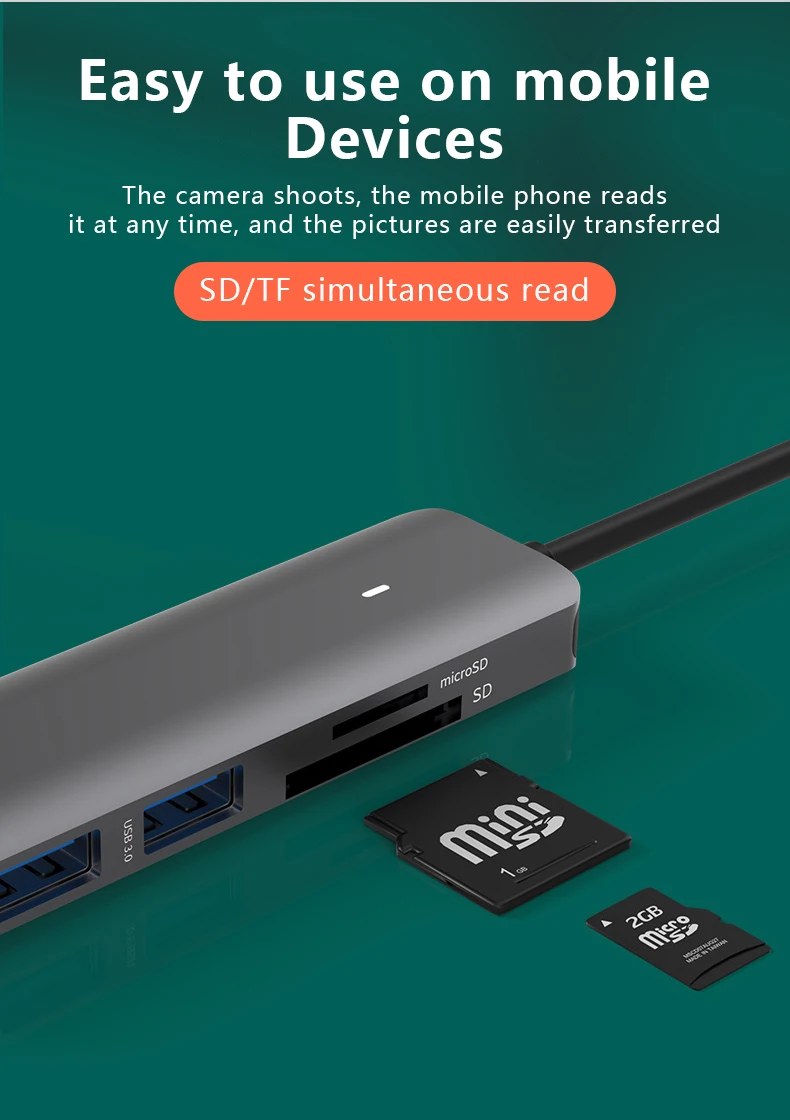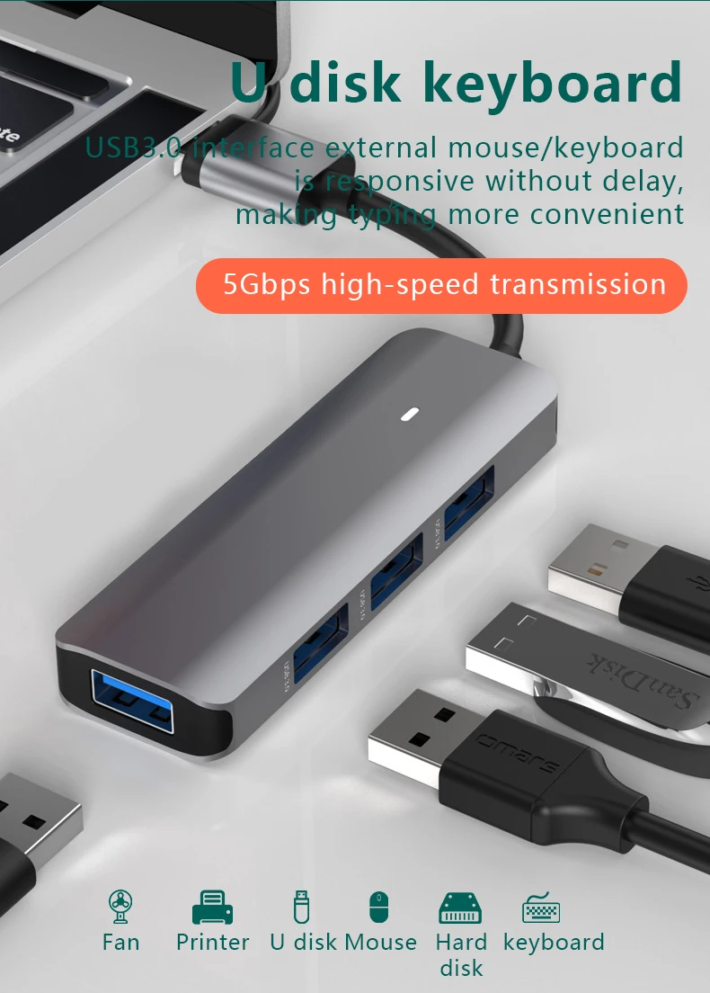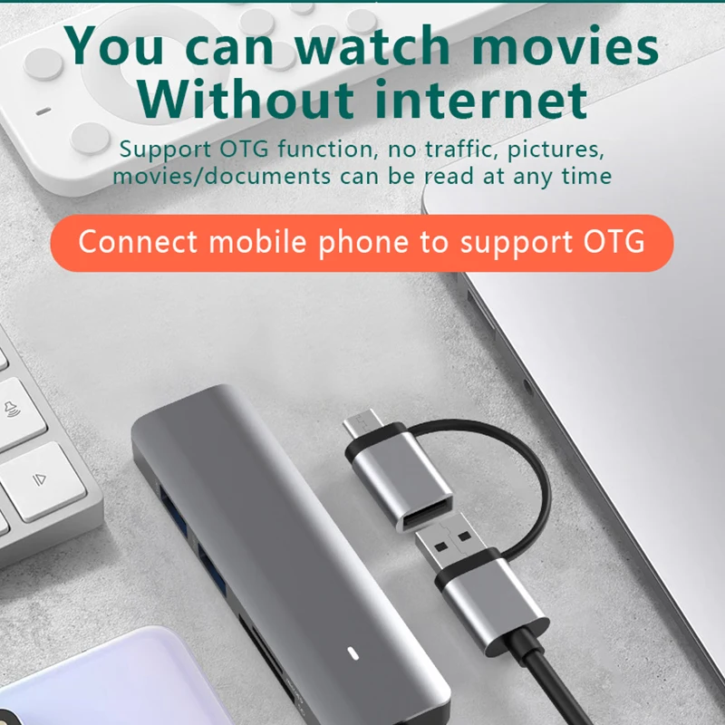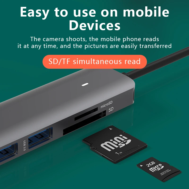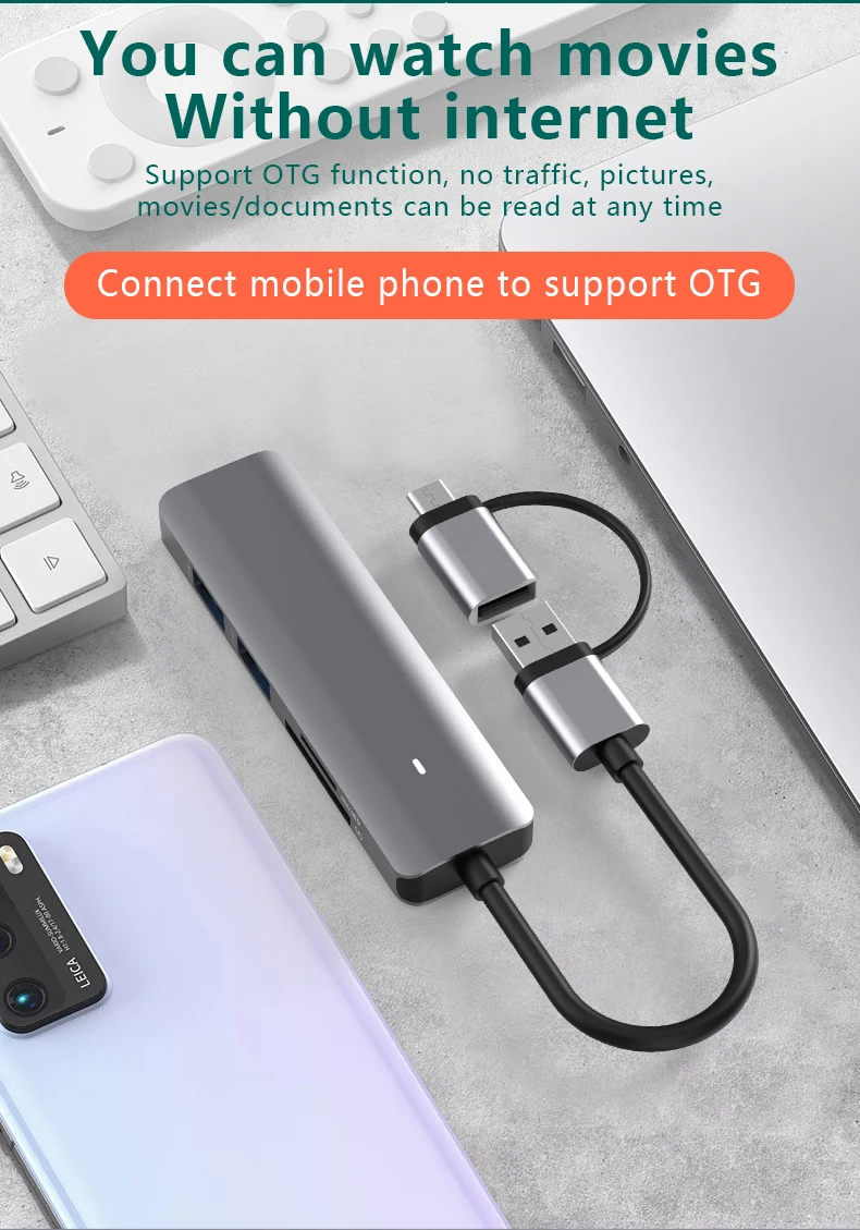 Comprar Estación de acoplamiento tipo C, SD/TF, lectura simultánea, USB 3,0x4, divisor 5 en 1, concentrador de expansión, teléfono móvil/ordenador, Universal
