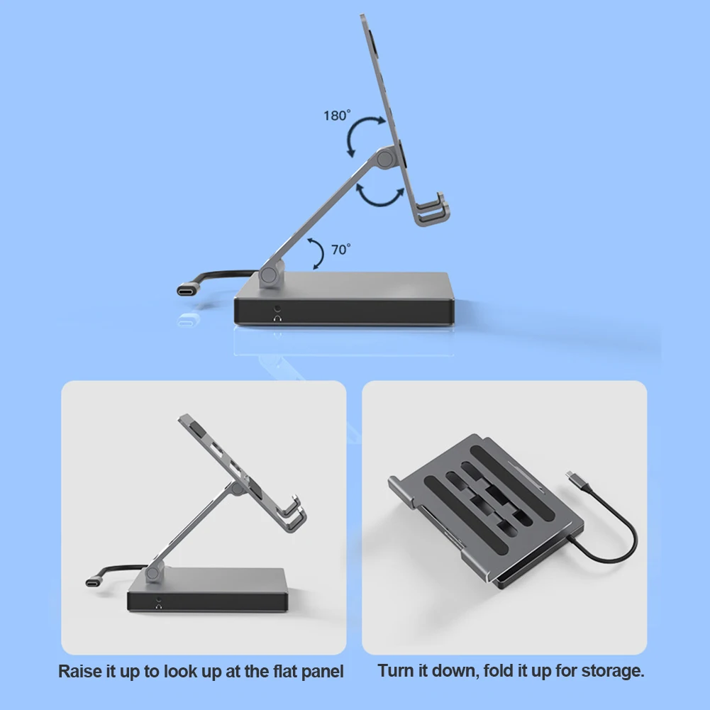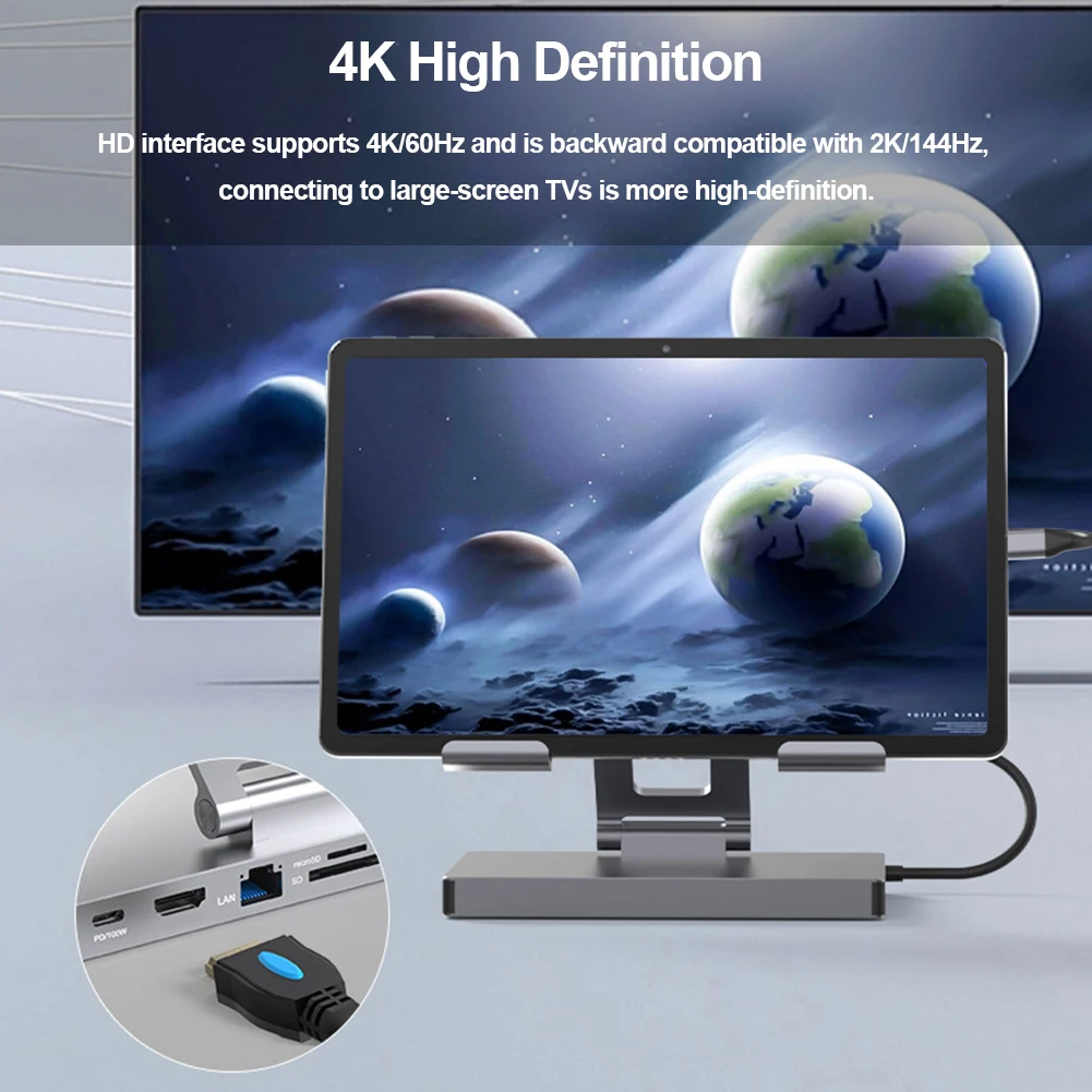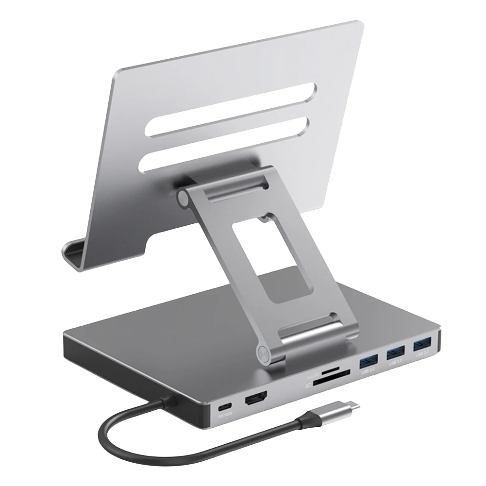 Estación de acoplamiento Soporte para computadora portátil Aleación de aluminio Múltiples puertos Hub PD USB3.0 Soporte USB C Estación de acoplamiento Ranura SD TF Gigabit Ethernet