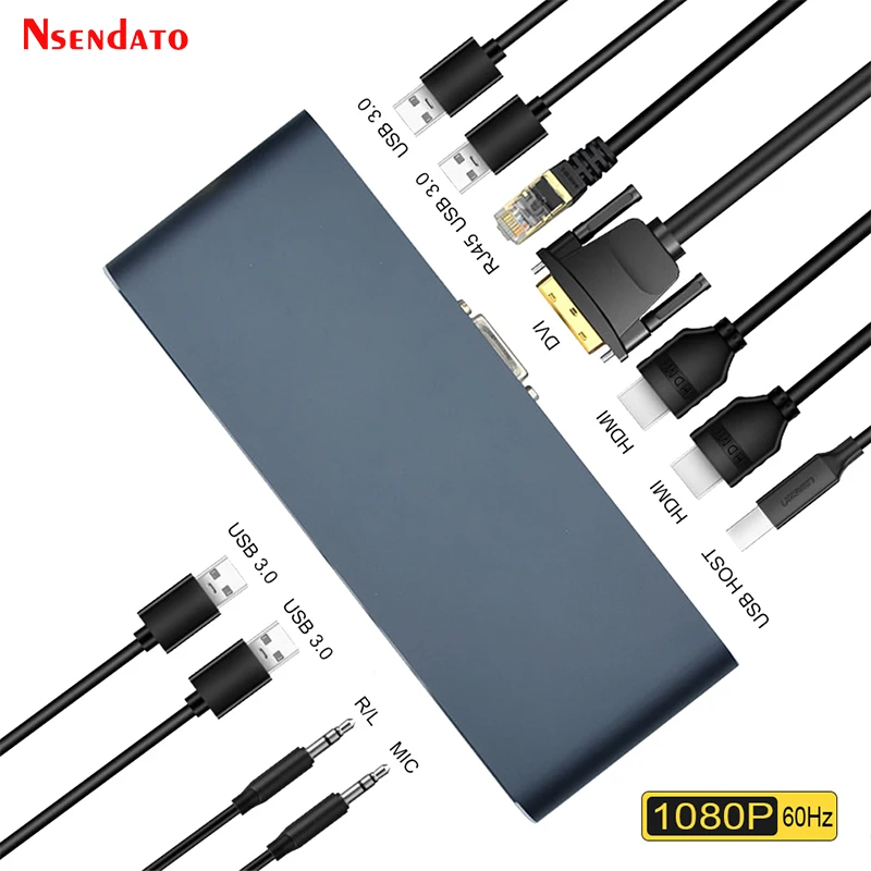 Estación de acoplamiento universal multipantalla USB C HUB 2X HDMI DVI RJ45 estaciones de acoplamiento para portátiles proyector de impresora de Monitor