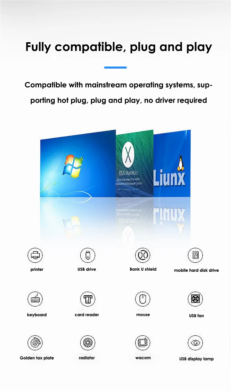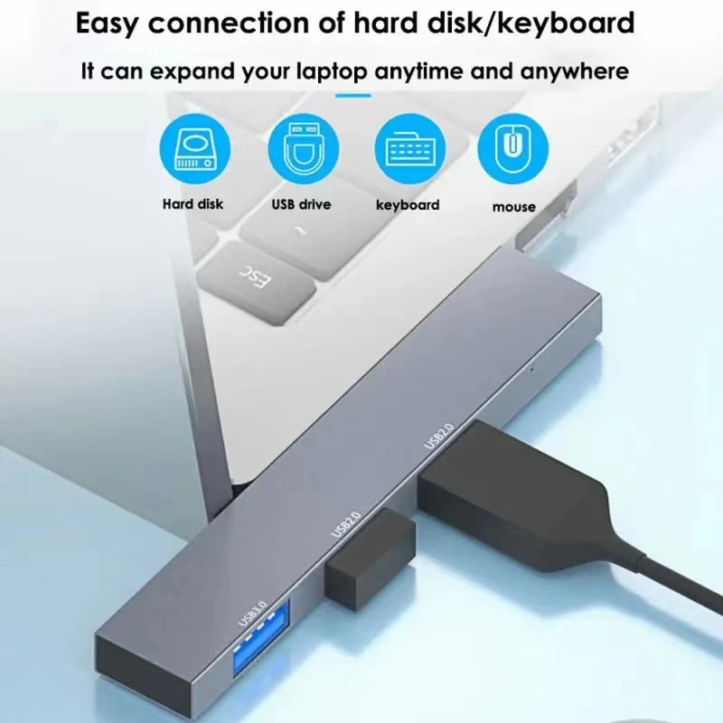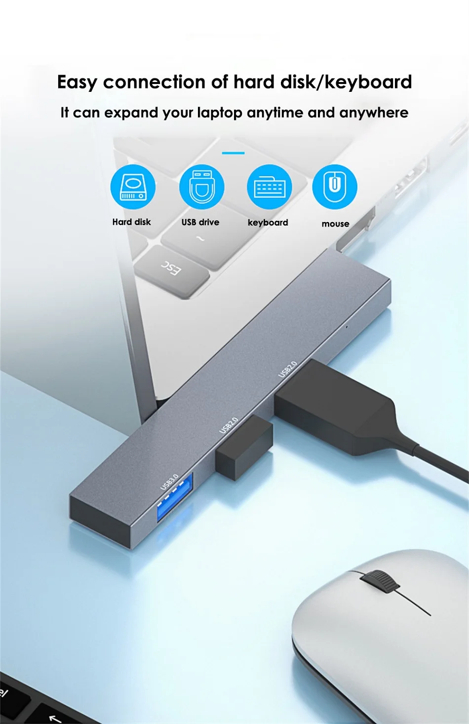 Comprar Estación de acoplamiento USB 3,0 2,0, expansor tipo C, divisor de concentrador multipuerto para ordenador portátil, PC, Macbook Pro, impresora de disco U, adaptador de teclado y ratón