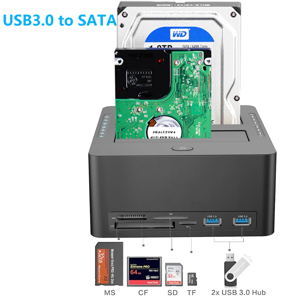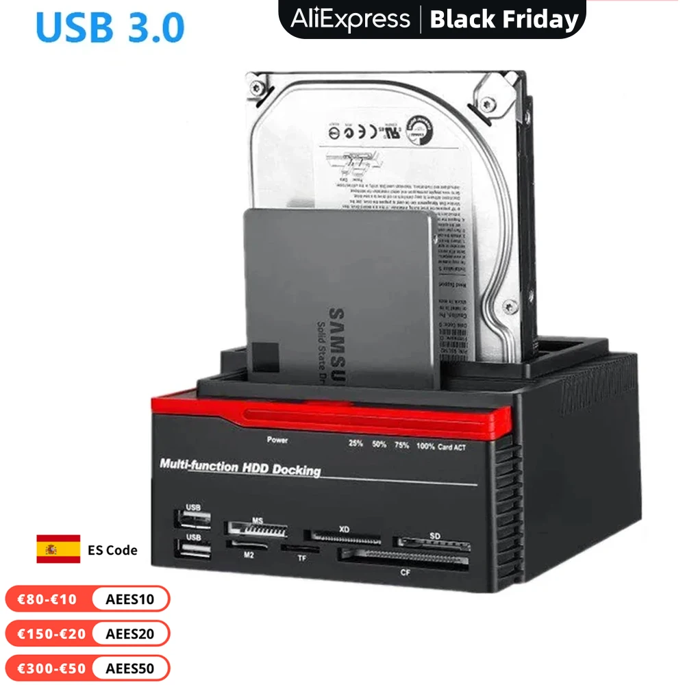 Comprar Estación de acoplamiento USB 3,0 HDD para disco duro adaptador SATA IDE de 2,5 pulgadas, unidad de estado sólido SSD con lector de tarjetas, Hub USB