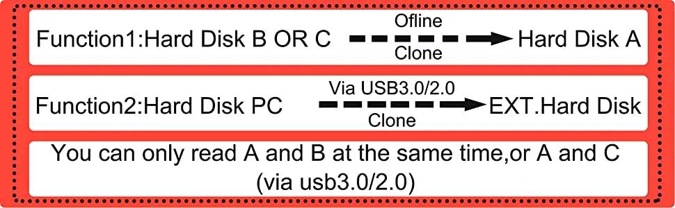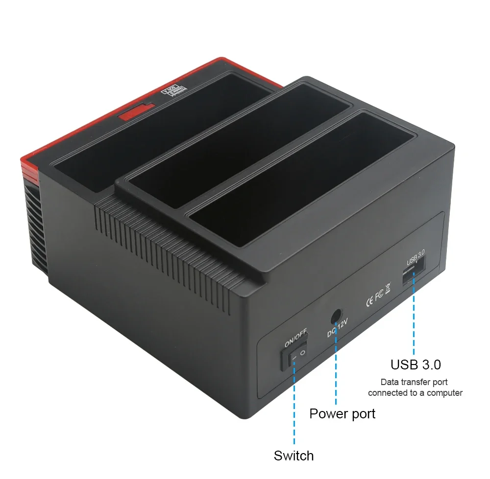 Modelo 9-12: USB 3,0, dos discos (1 SATA + 1 SATA) funcionan al mismo tiempo. (Admite la clonación sin conexión, la capacidad del disco receptor debe ser mayor que el disco original).