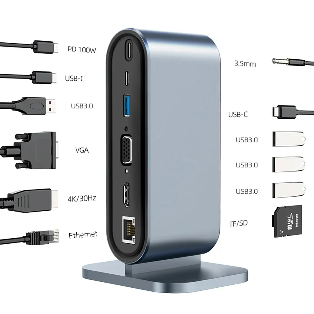 Comprar Estación de acoplamiento USB C 12 en 1 con 100W PD USB-C 4K HDTV VGA USB 3,0 RJ45 lector de tarjetas SD/TF Audio para Windows Mac Xiaomi portátil
