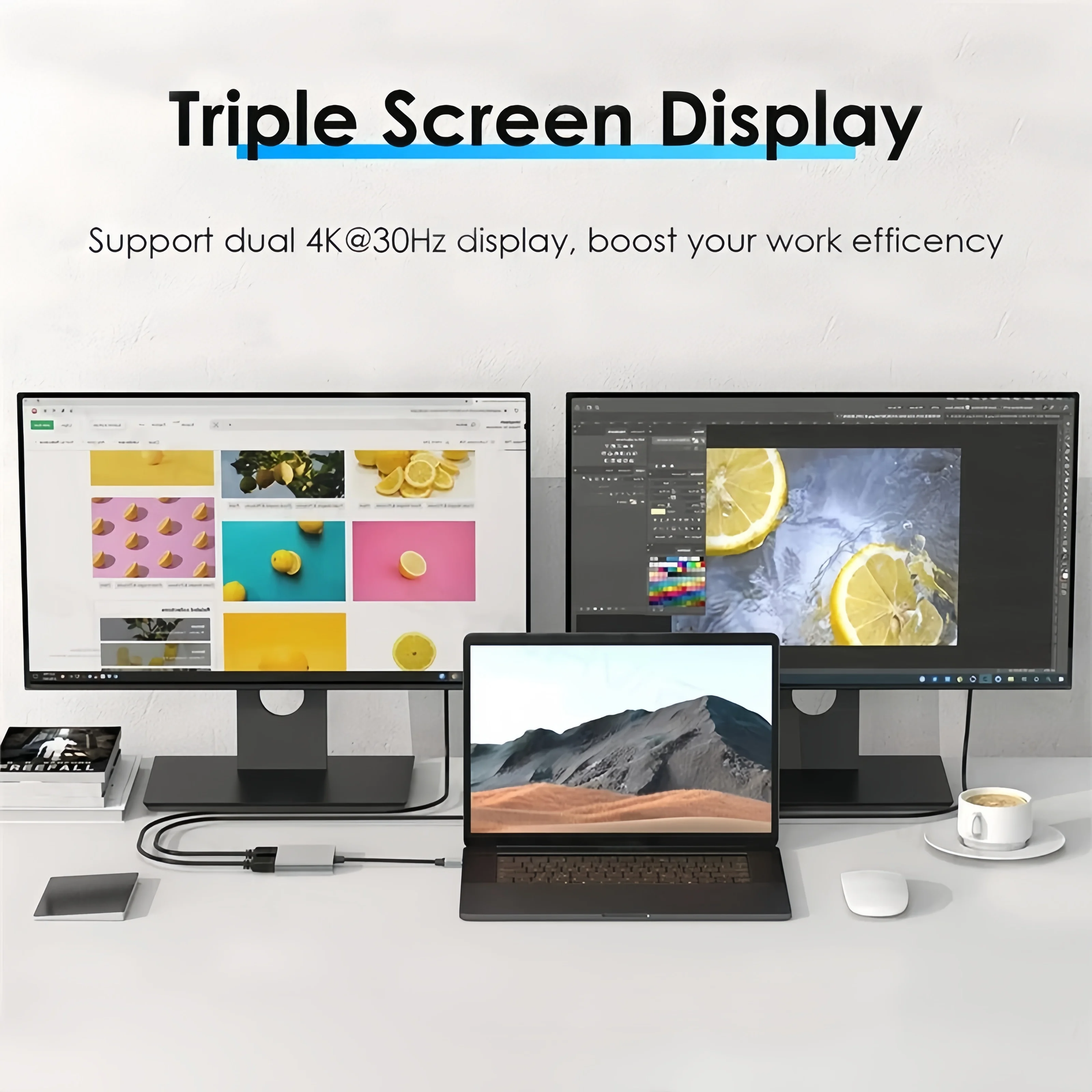 Admite pantalla dual 4K@30Hz, aumenta la eficiencia de tu trabajo