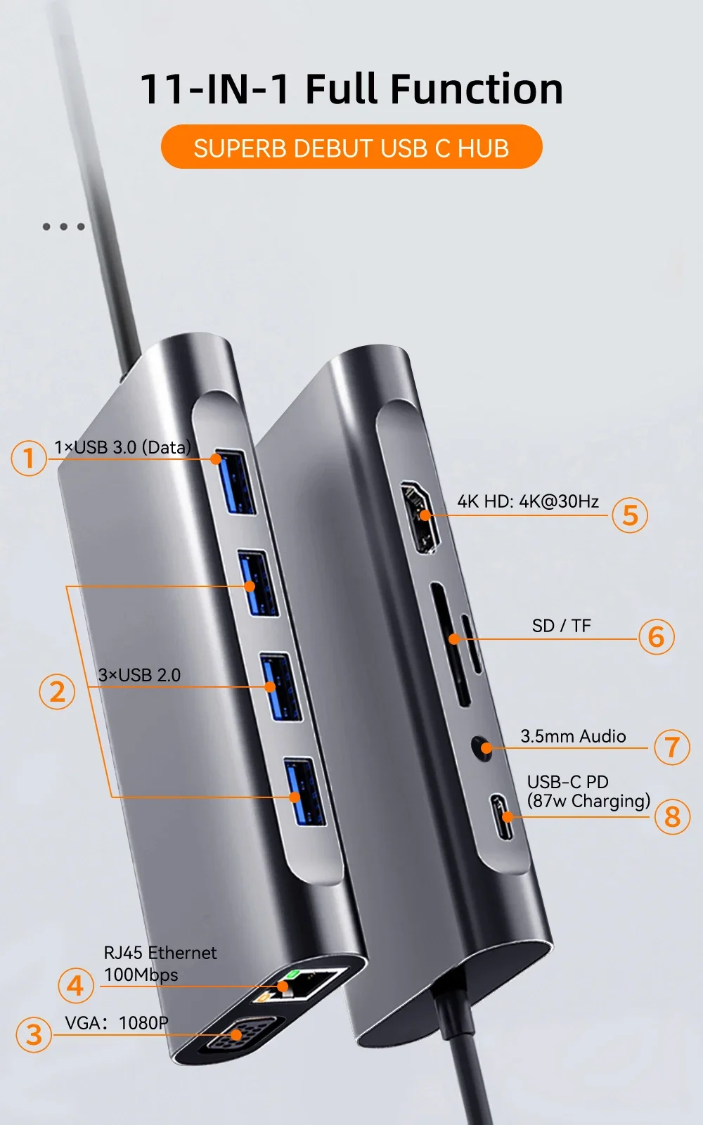 Comprar Estación de acoplamiento USB C 4K 30Hz, adaptador VGA RJ45 tipo C a HDMI, divisor de concentrador USB 3,0 para ordenador portátil, Macbook Air M1, iPad Pro