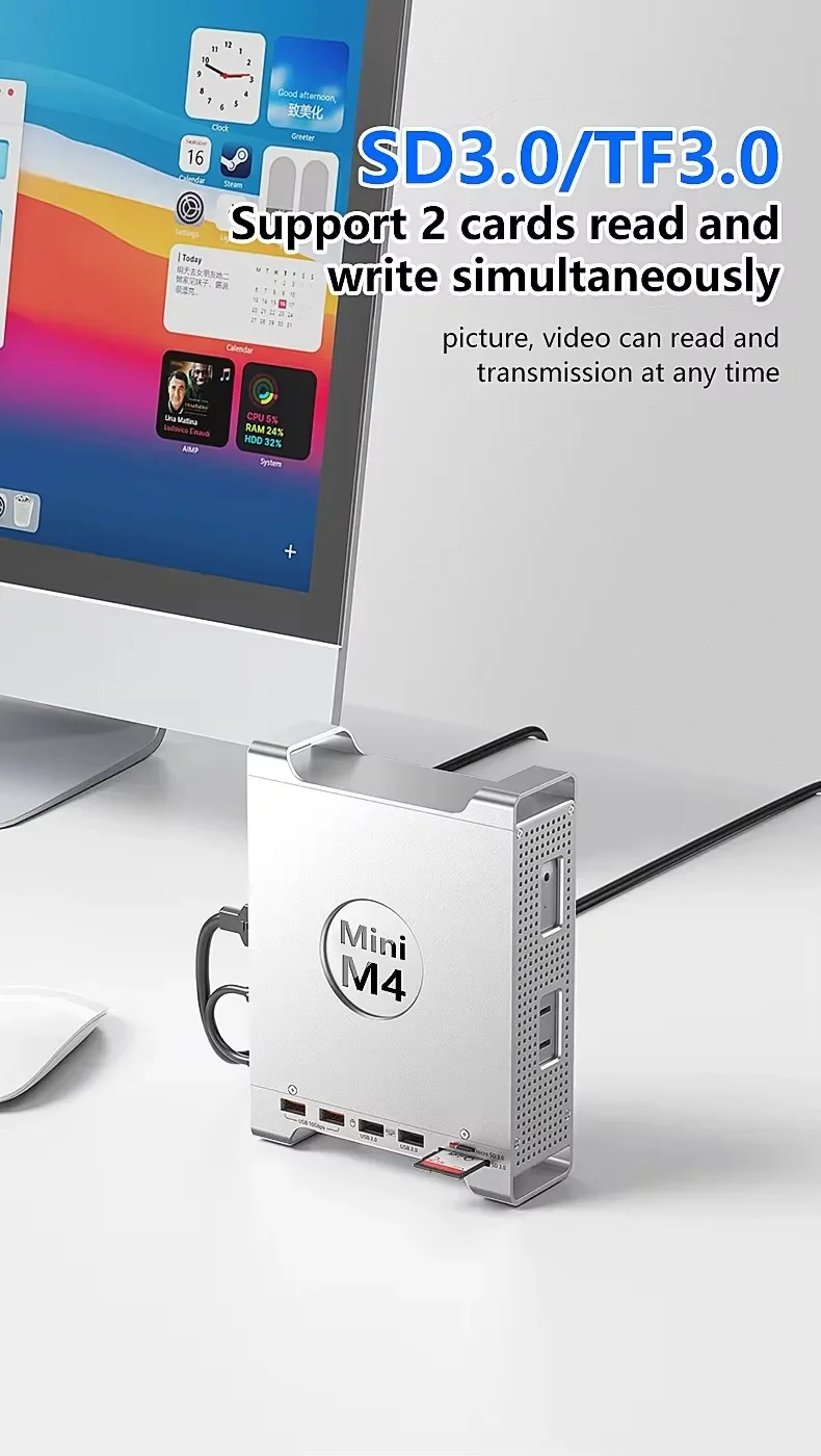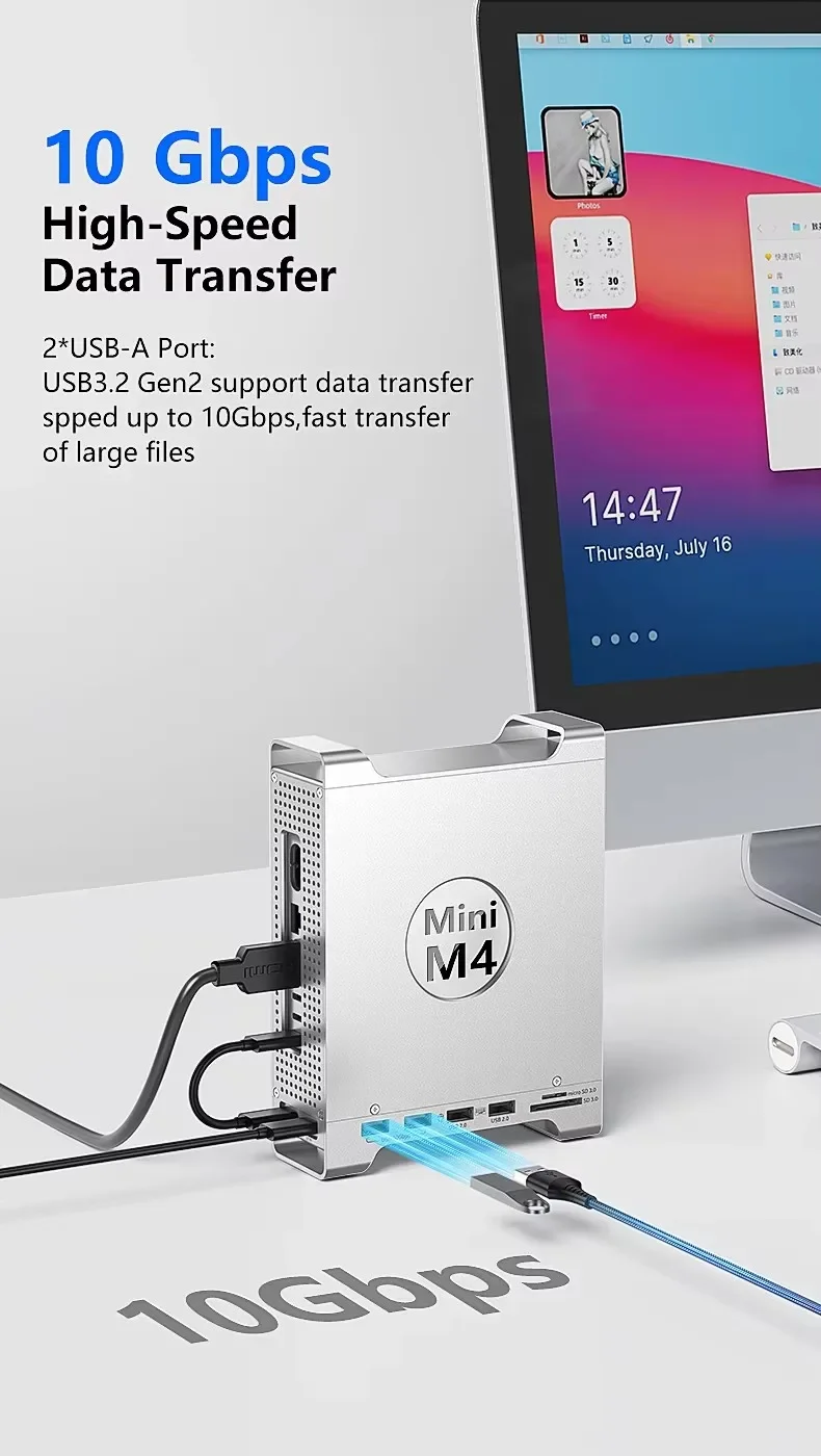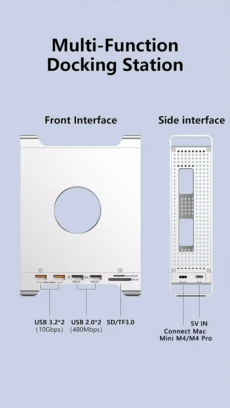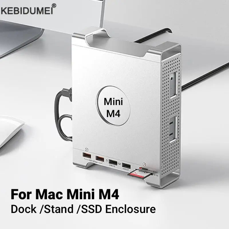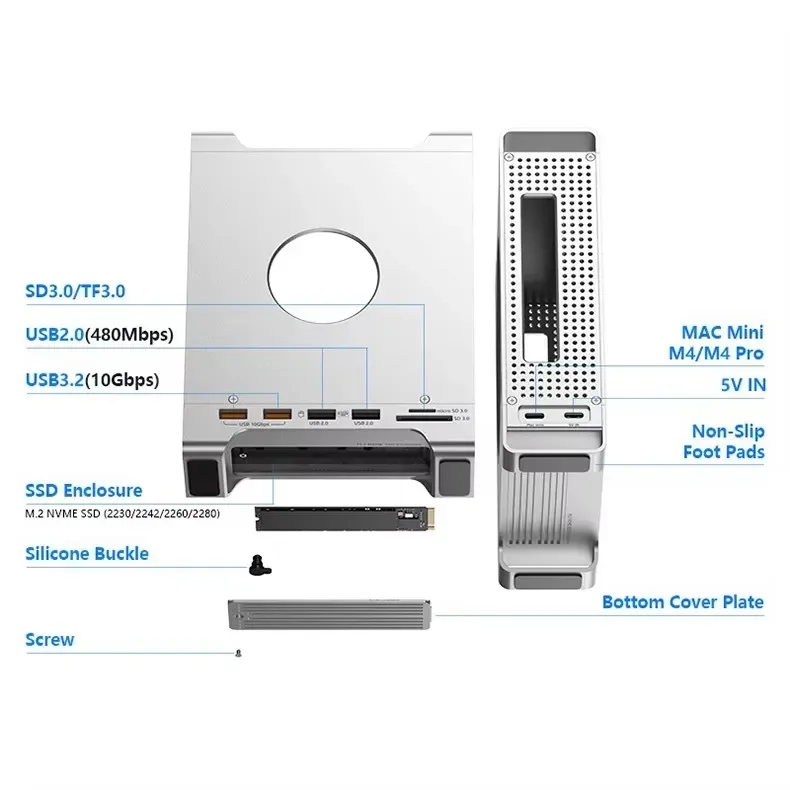 Para Mac Mini M4 soporte y base de concentrador USB tipo C estación de acoplamiento con 10 Gbps USB 3,2 USB 2,0 SD TF M.2 NVME caja de aluminio