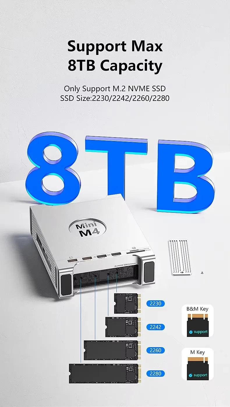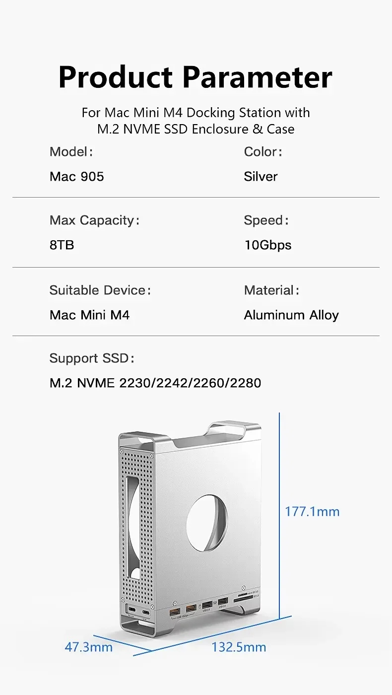 Aviso: el paquete solo es el estuche y el concentrador M.2 NVMe, debe usarse con Mac Mini M4.